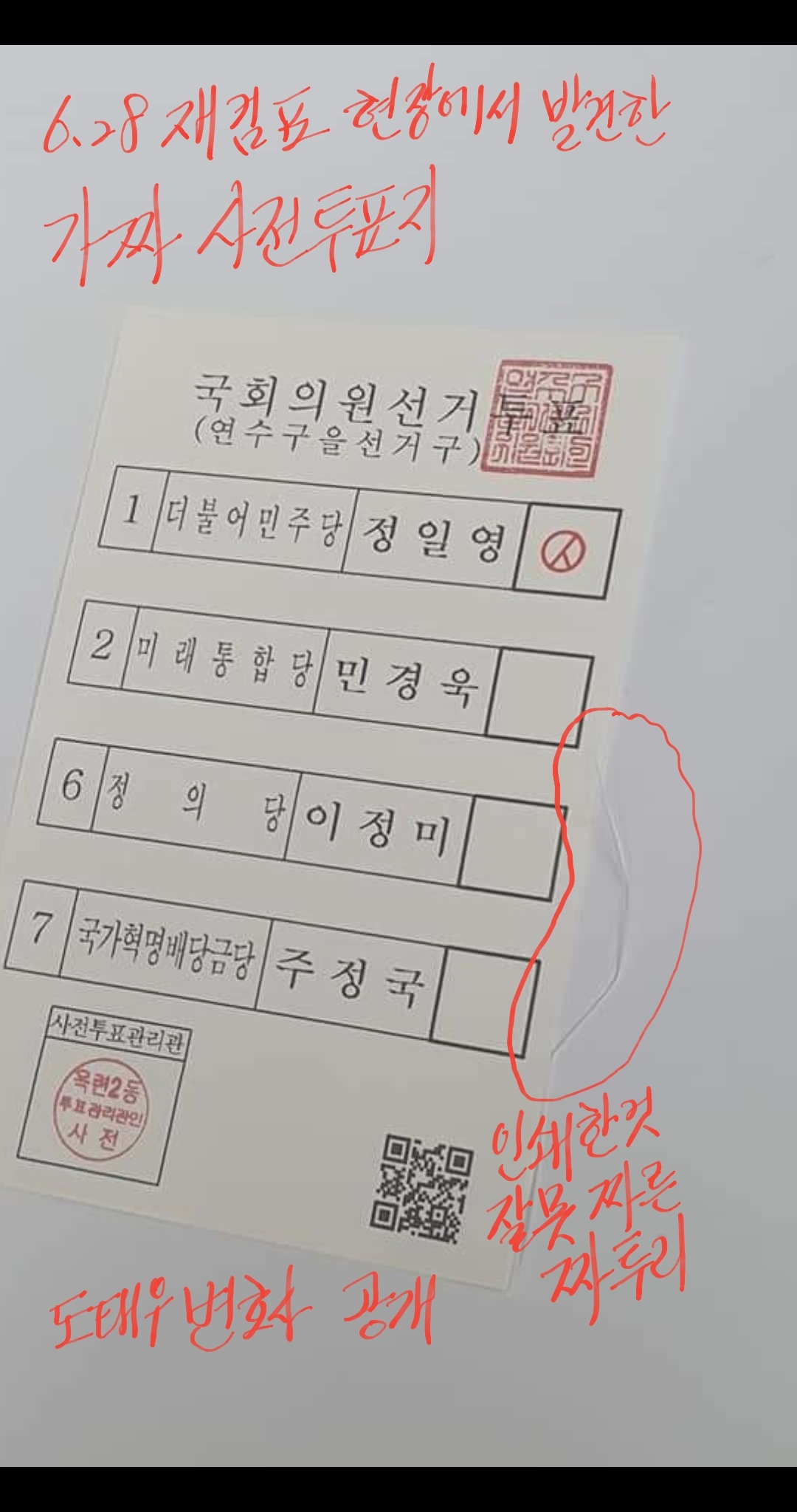 [6.28 (인천연수을) 재검표에서 발견된