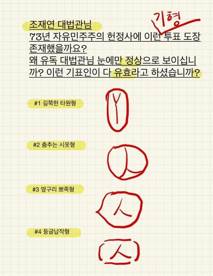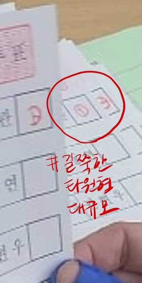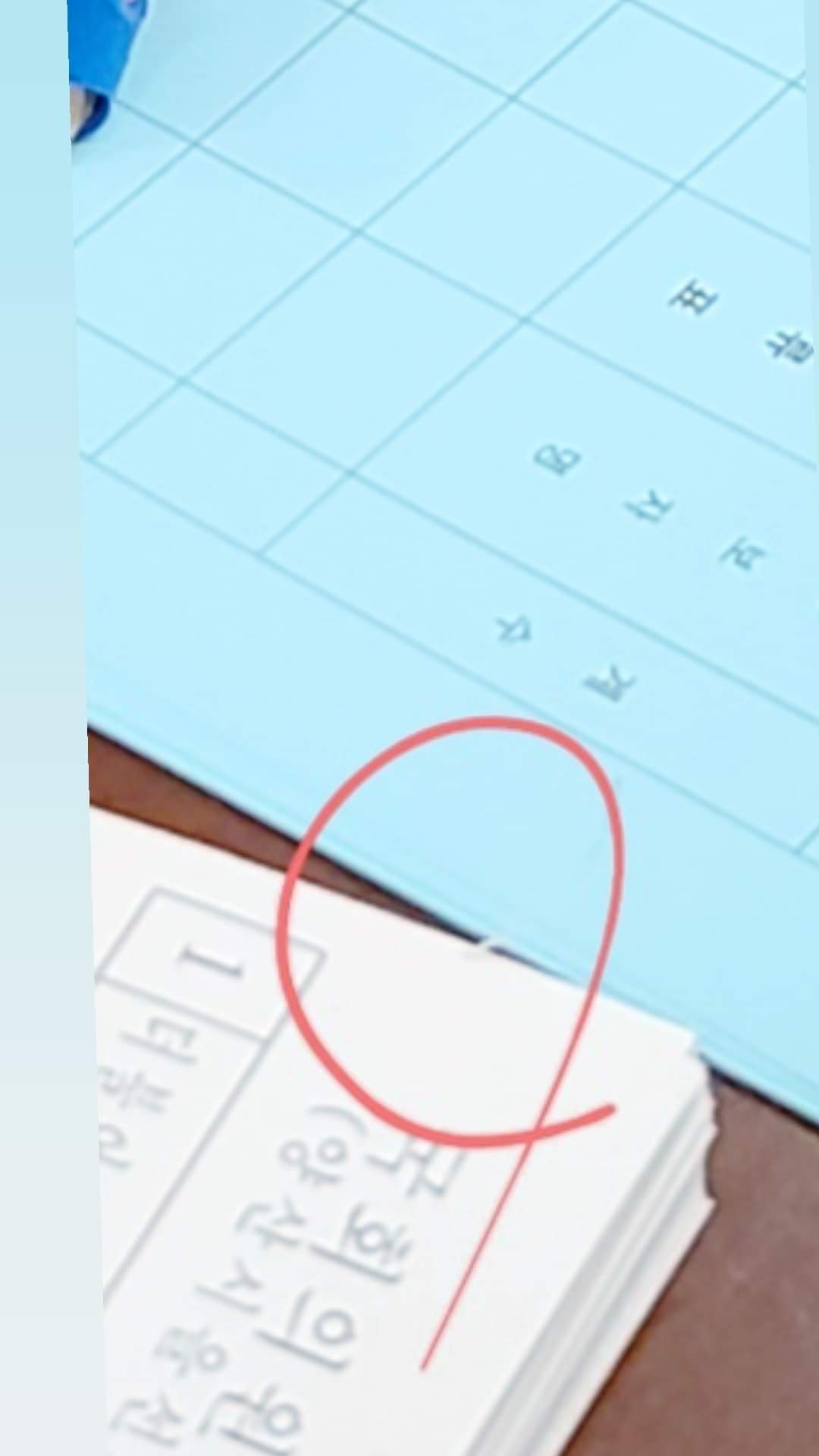 ○ 가로 선이 검은색이 아닌 빨간색으로 된 투표용지