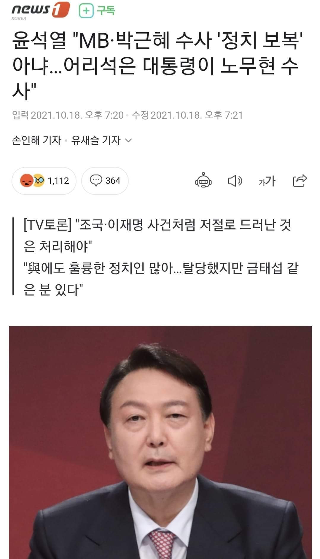 ●윤석열: "문재인 대통령에 대한 충성심 변화 없다.