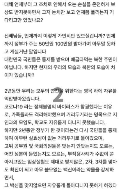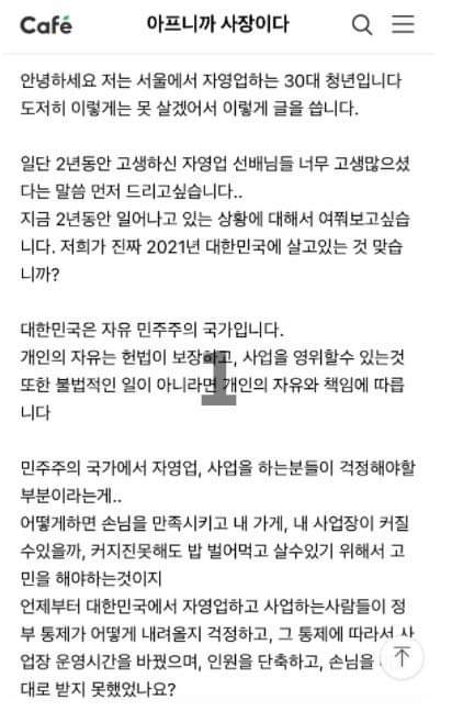 '제발 영업시간좀 늘려주세요. 손실 보상해주세요. 영업제한 그만요' 같은
