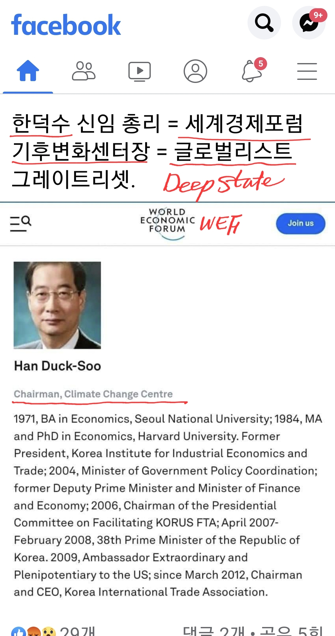 ☆한덕수(윤석열정부 첫총리)=김대중,노무현(좌빨) 사람, Globalist, Deep State 멤버