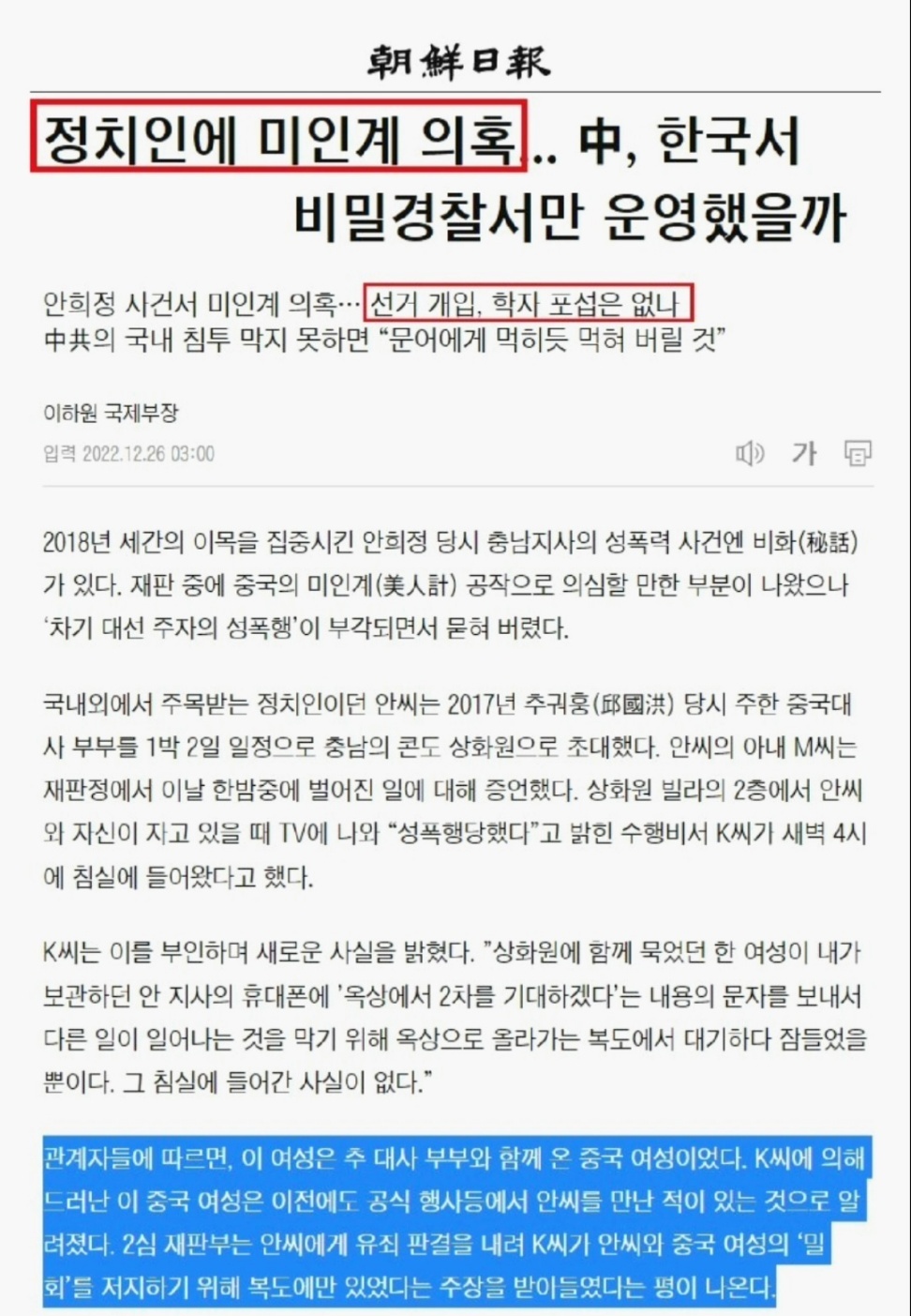 ☆중공 비밀경찰서, 마라탕맛집, 공자학원, 미인계...등