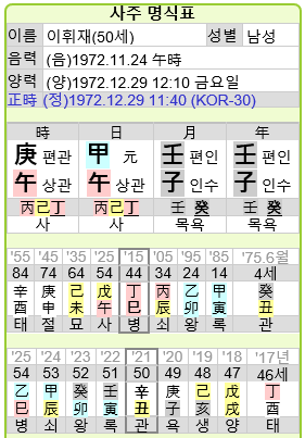 자.. 아래는. 이휘재씨 사주 인데요... _()_...