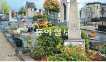아버지 묘 위에 아들 묘비만… 프랑스 파리 남쪽 근교 부르라렌의 ‘페이자제’ 공동묘지에 서있는 갈루아의 ‘묘비’. 이곳은 자살한 그의 아버지 니콜라가브리엘의 무덤이 있는 곳이다. 권총 결투로 사망한 갈루아의 무덤을 찾을 수 없어 아버지의 묘비 위에 그의 묘비를 세워 놓아 ‘부자의 비극’을 보여준다. 부르라렌=구자룡 기자 bonhong@donga.com