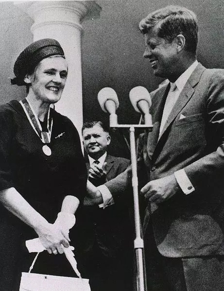 출처 : 1962년 미국 케네디 대통령이 켈시에게 대통령상을 수여하는 장면. 위키백과 공용
