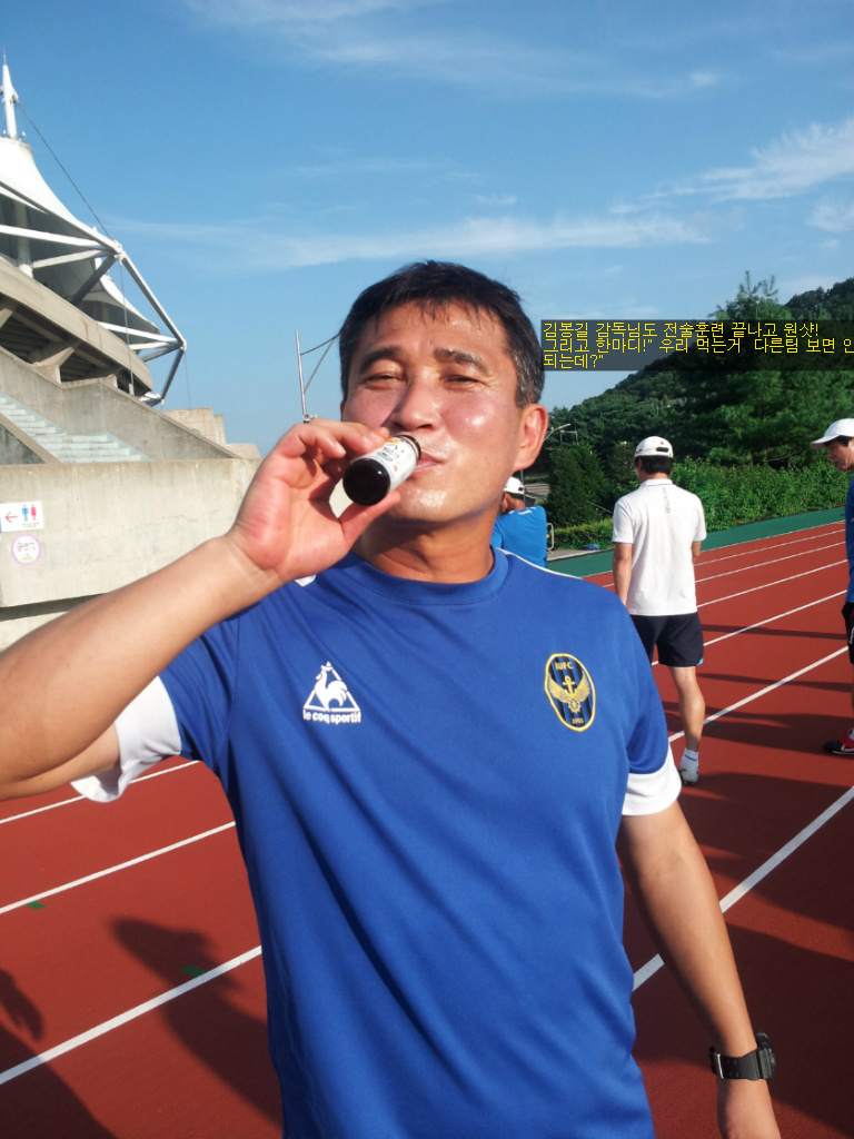 김봉길감독님은 이거 마시는거 다른팀이 보면 안된다고 신신당부 하셨는데, 제가 우리 폐쇄카페에만 올릴 겁니다 하고