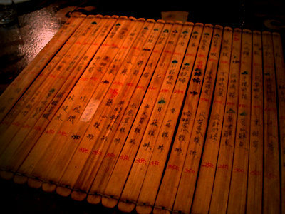죽간(竹簡) :고대 중국에서 종이가 발명되기 전에 글자를 적던 대나무 조각. 또는 그 댓조각을 엮어서 만든 책.