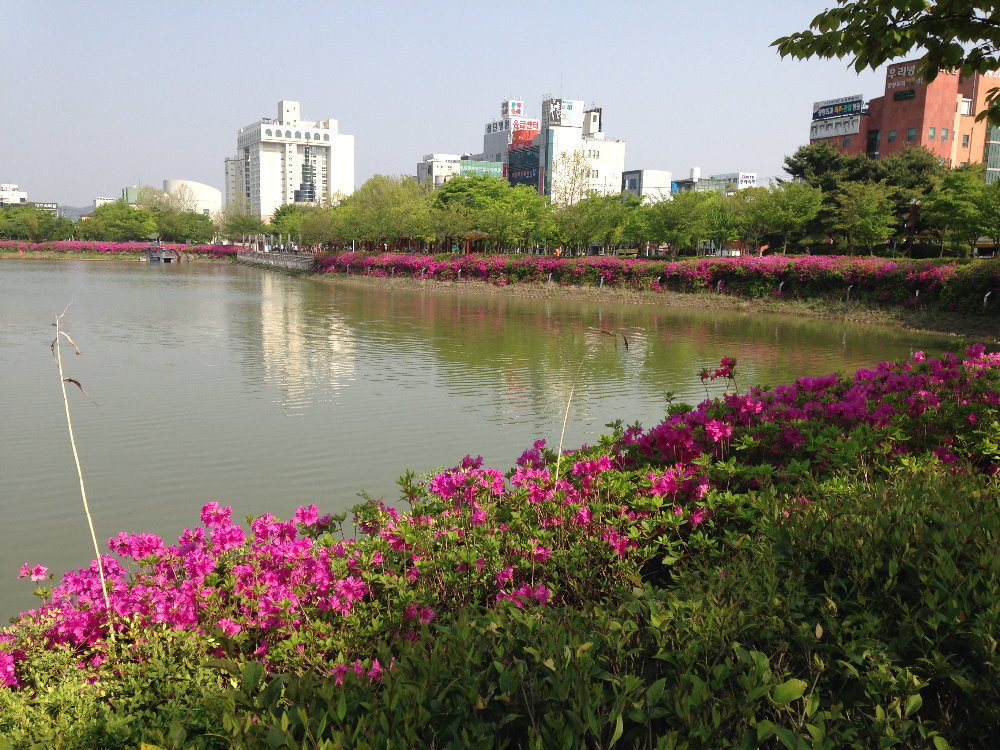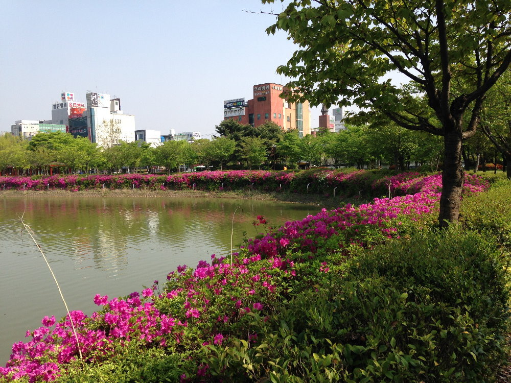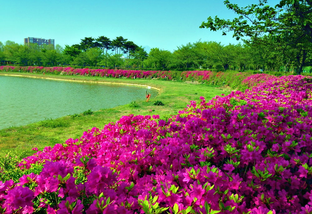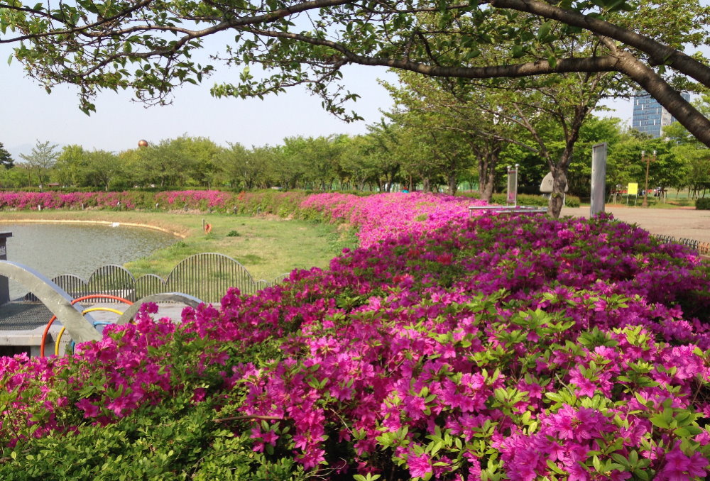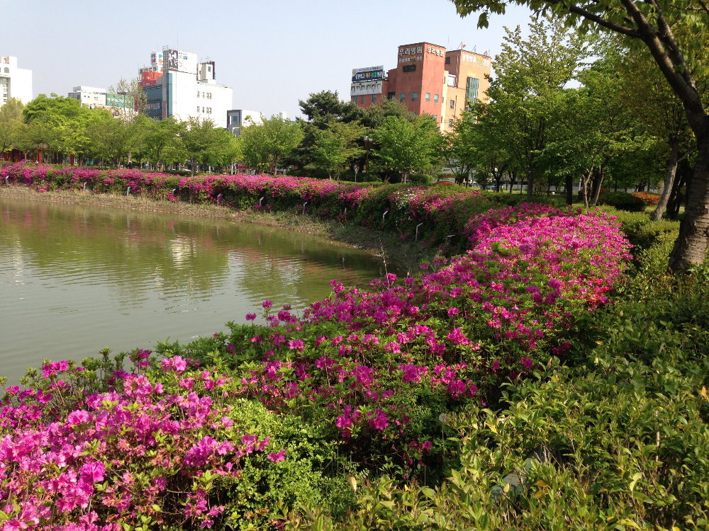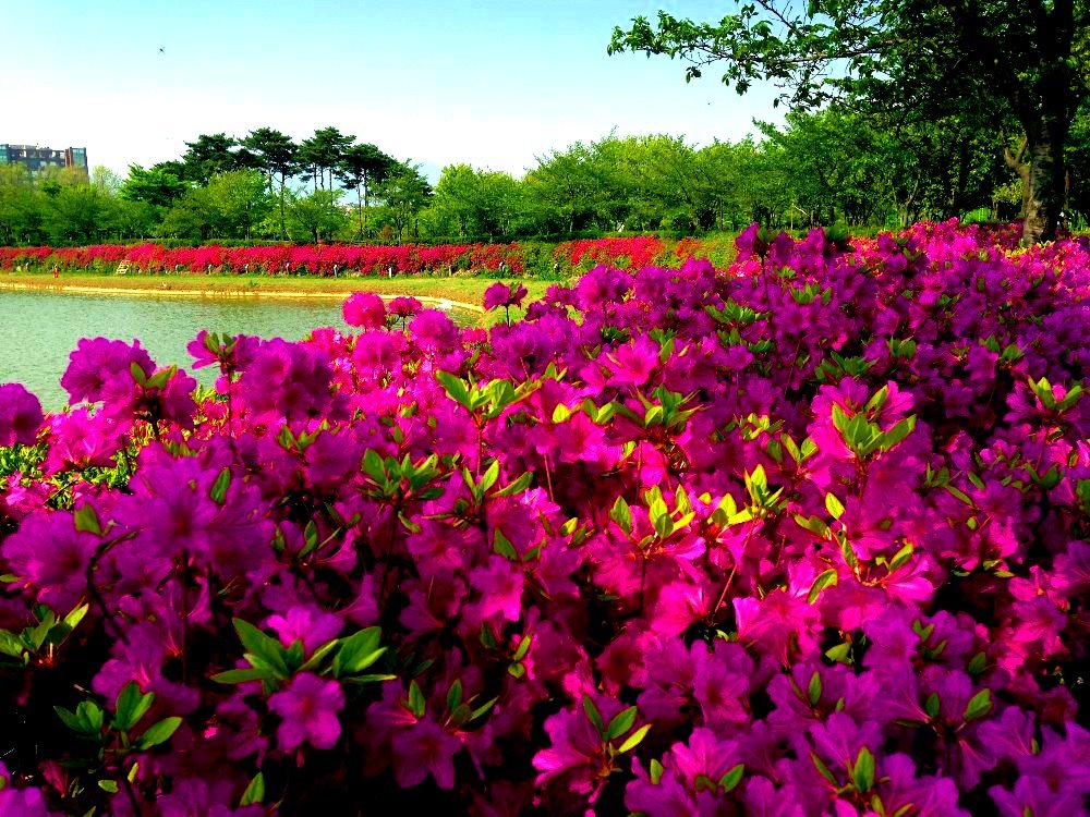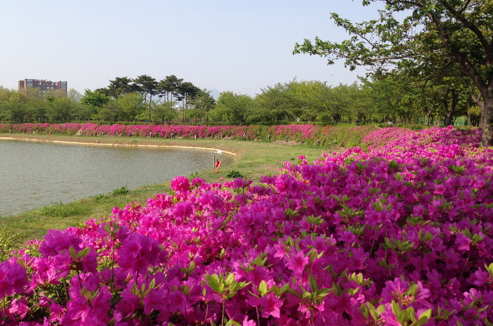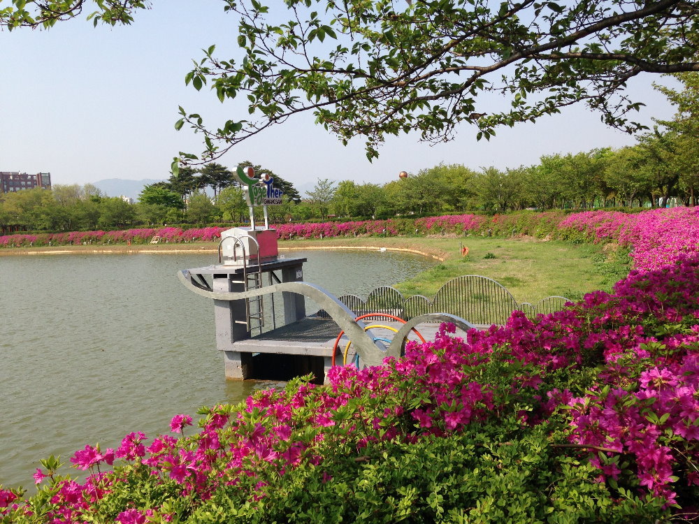 광주광역시 첨단지구 쌍암호수의 철쭉꽃이 피었기에