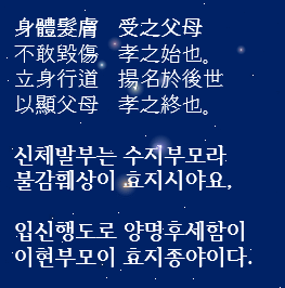 신체발부는 수지부모요 불감훼상이 효지시야니라.