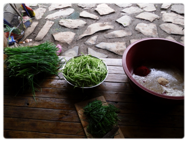 부추 다 짤랐쓰믄 야들좀 섞어바유