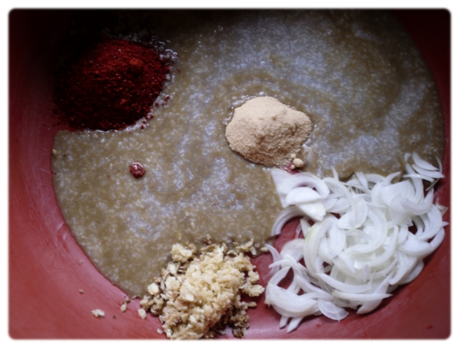마늘,양파,설탕,고추가루,아까우게꺼 죽허고요 풋내나까 싶응게 꼭~큰 함박에다해요.이?