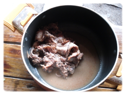 그닌깐 체에다 걸러서 찹쌀죽한티 같이 살으라고 부어줘유....뼈빼고 물만 부으라고욧!!