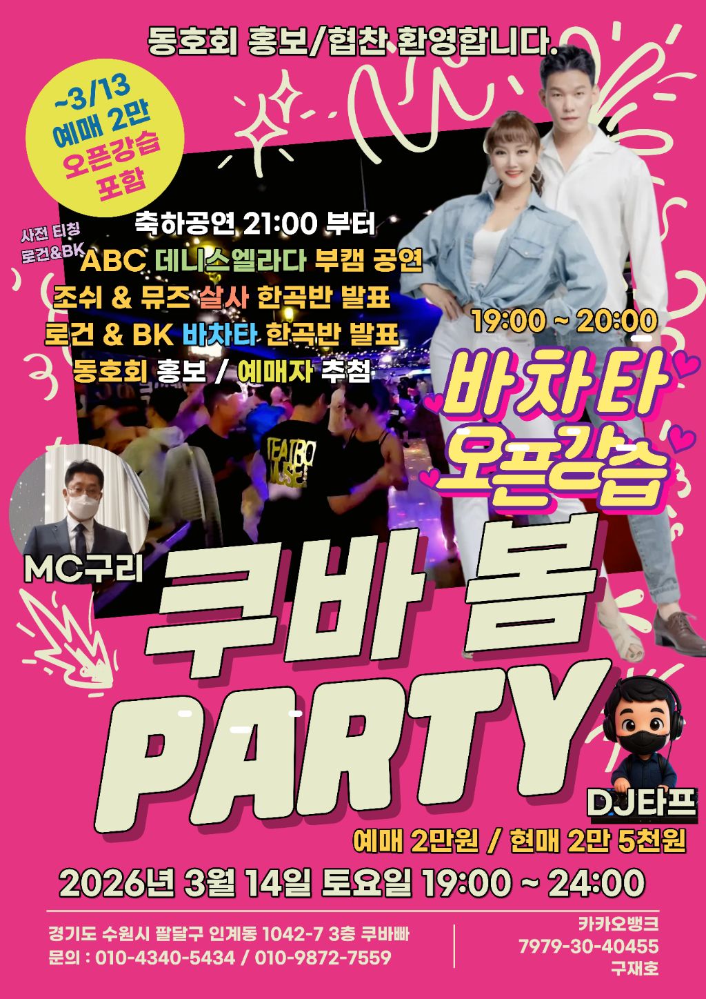 #수원쿠바 #수원라틴 #수원바차타 #수원살사 #봄파티 #라틴파티 #수원직장인취미생활 #수원살사강습 #살사댄스 #수원라틴클럽 #꿀잼소셜 #남녀취미 #수원친구만들기 #취미운동 #취미댄스 #바차타오픈강습 #인계동핫플 #수원놀거리