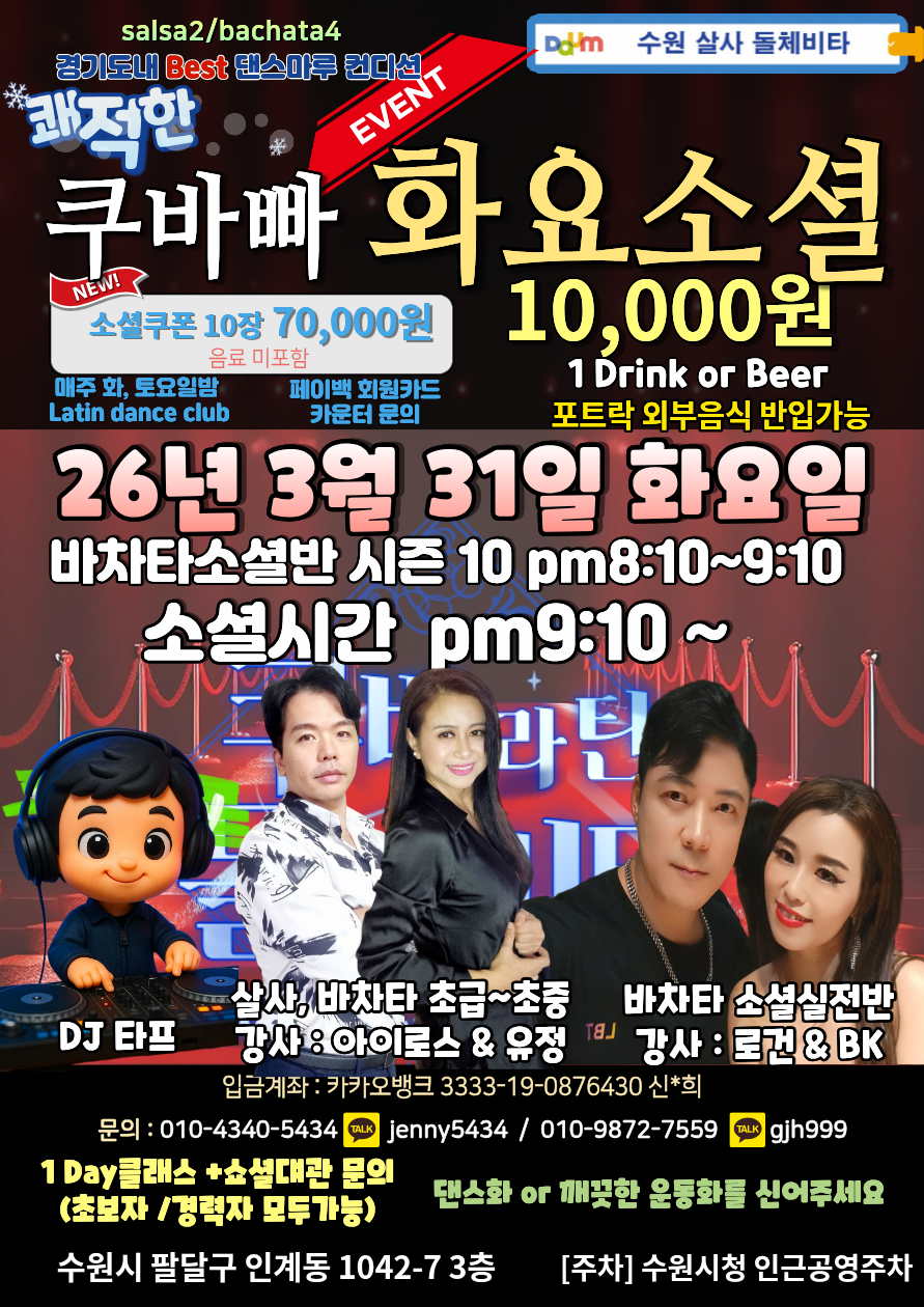 #μμλΌν΄λμ€ #μμλͺ¨μ #μμμΏ λ° #μμμ΄μ¬λ°μ°¨ν #μμμ·¨λ―Έ #30λμ·¨λ―Έ #40λμ·¨λ―Έ #μμλ°μ°¨ν #μ΄μ¬λ° #μΈκ³λλ거리 #latindance #salsa #bachata #νμλͺ¨μ #μμ