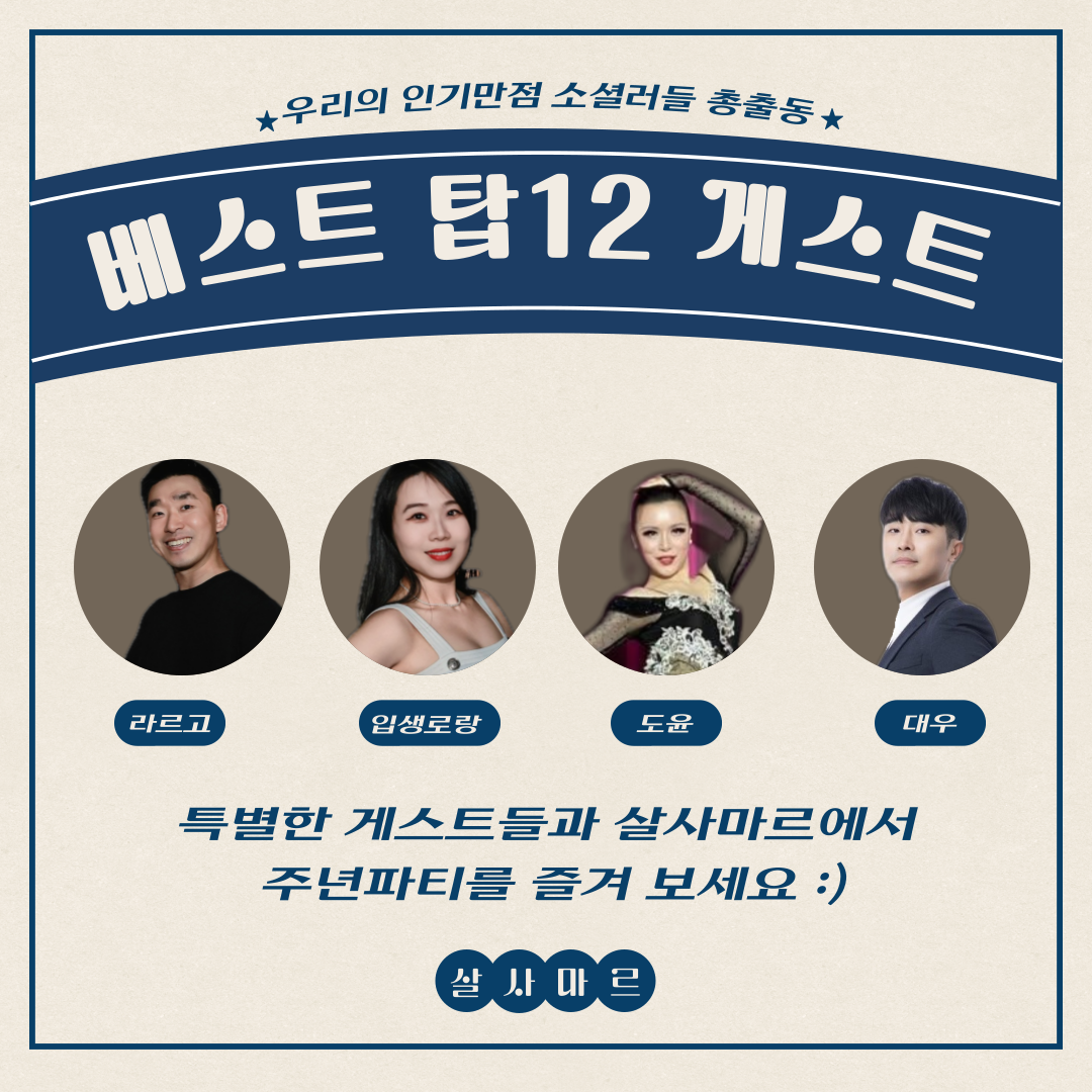 νΉλ³ν κ²μ€νΈλΆλ€κ³Ό μ΄μ¬λ§λ₯΄μμ ν¨κ»νμΈμ :)
