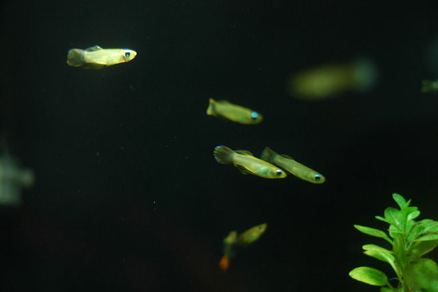 이 놈들은 램프아이라는 아프리카산 송사리의 일종입니다. 약 20마리 중에서 점프사하고 실종된 놈을 제외하고 7마리 정도가