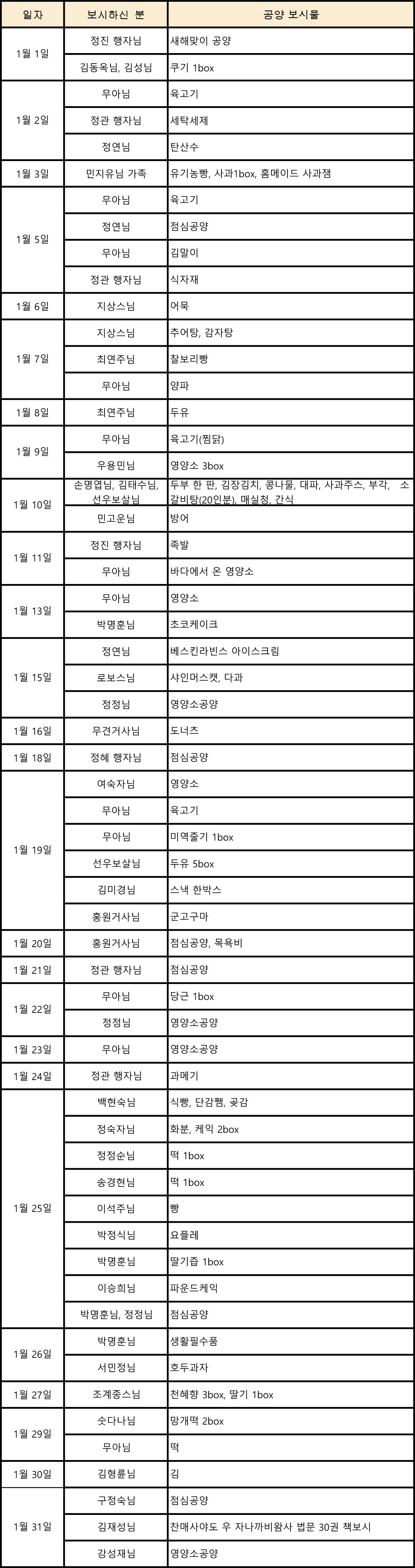 1월 공양 보시자