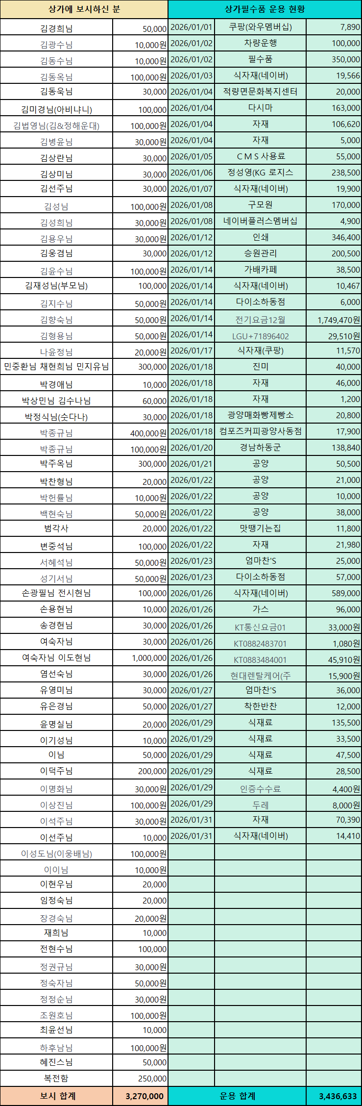 2026년 1월 상가보시 및 운용 현황