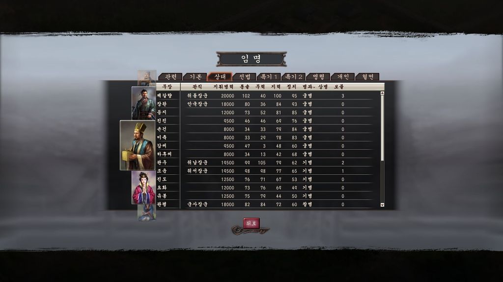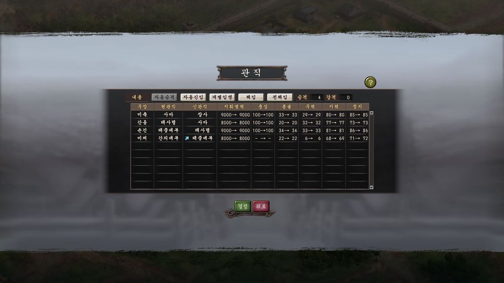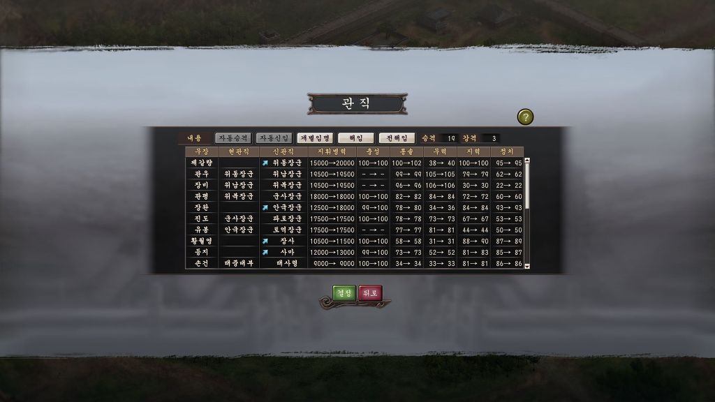 제갈량도 왔으니 관직을 수정해보지요... 자동승격 자동신임이 있지만... 가끔 수동으로 정해주는게 좋습니다..