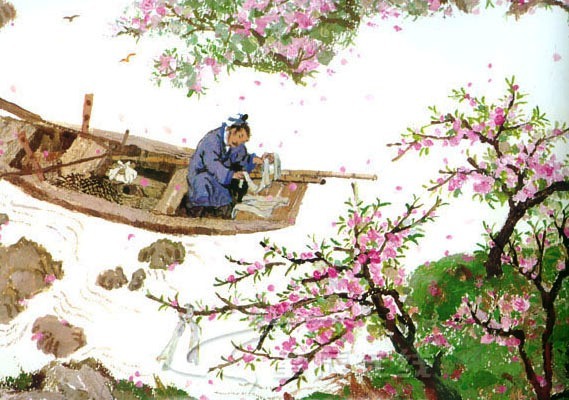 武陵人捕魚爲業(무릉인포어위업) : 무릉 사람이 고기 잡는것을 직업으로 삼고 있었는데
