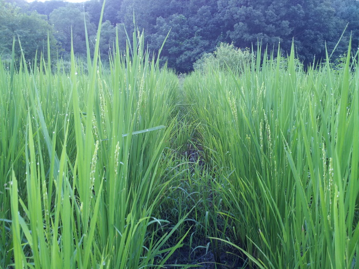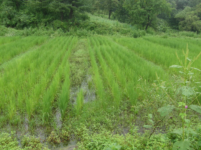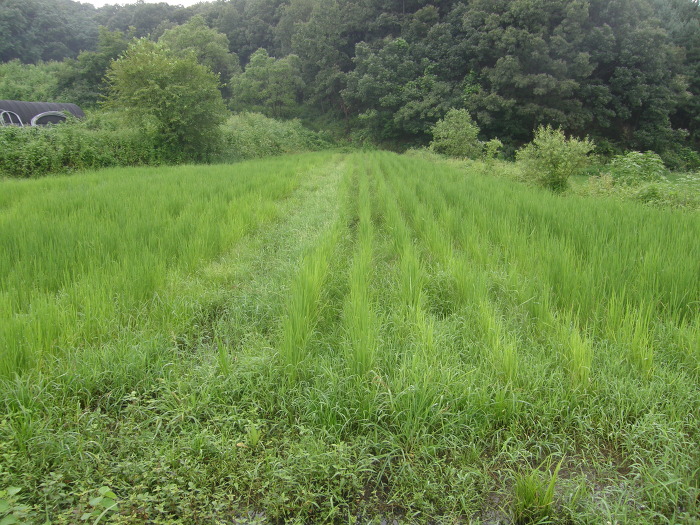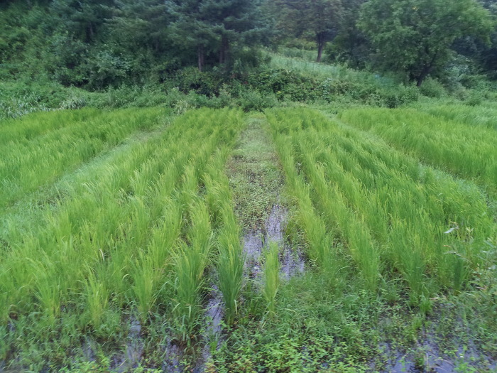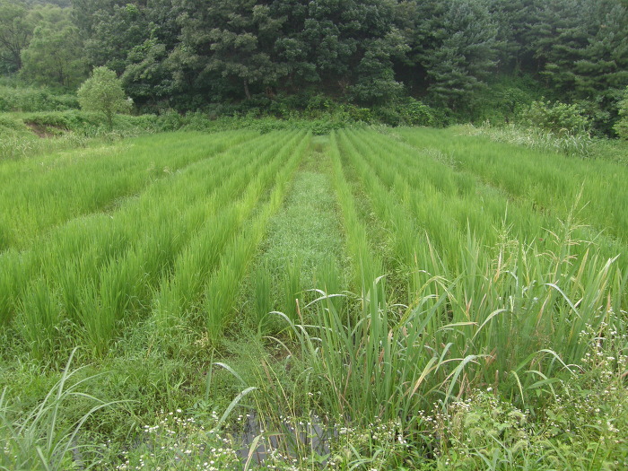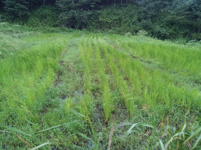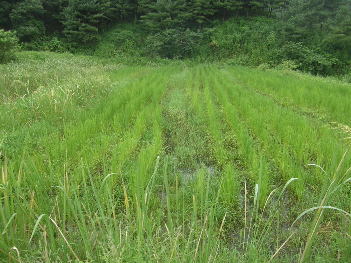 논바닥의 수평이 고르지 않아 물을 대는데 어려움이 있었지만 그런대로 잘 자라고 있습니다.