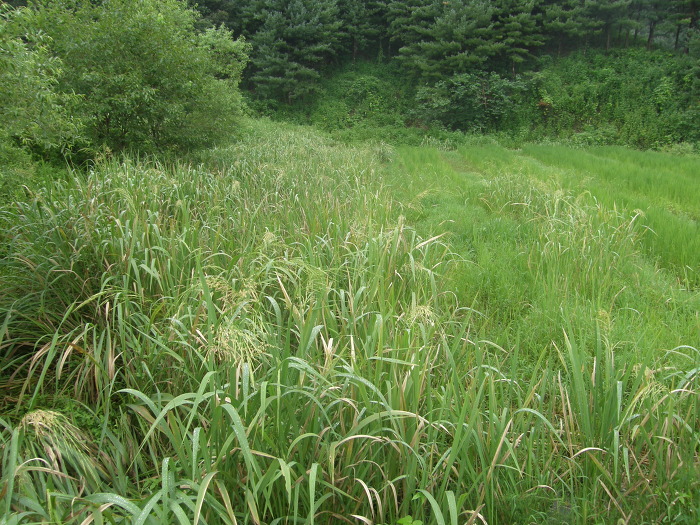 작년에 모내기 직후에 볏모가 모두 죽어버린 논입이다.