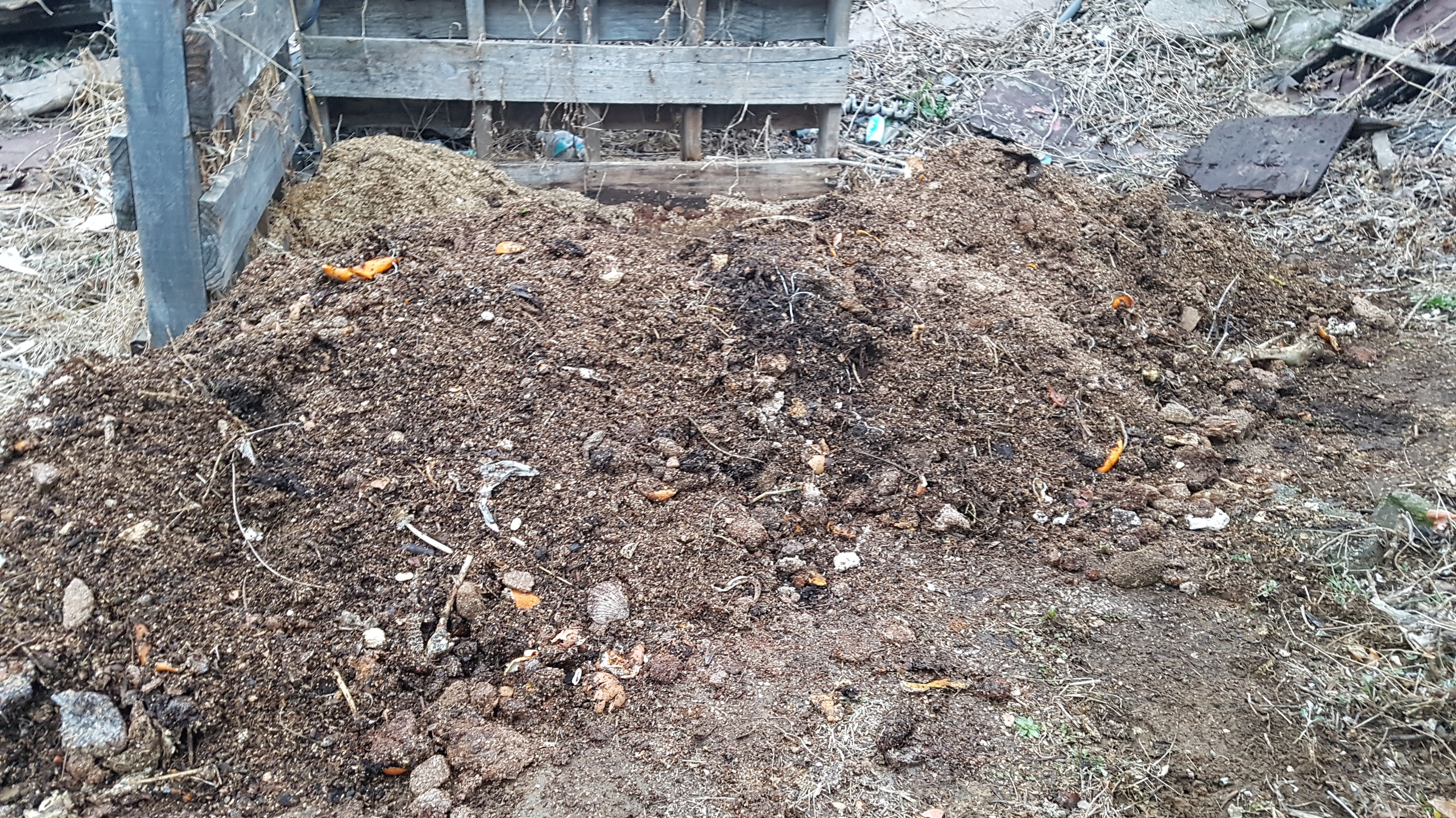 음식물 쓰레기는 1년 동안 모으면서 중간 중간 깻묵이나 왕겨, 쌀겨와 섞어두었다가 매년 봄에 밭에 뿌립니다.