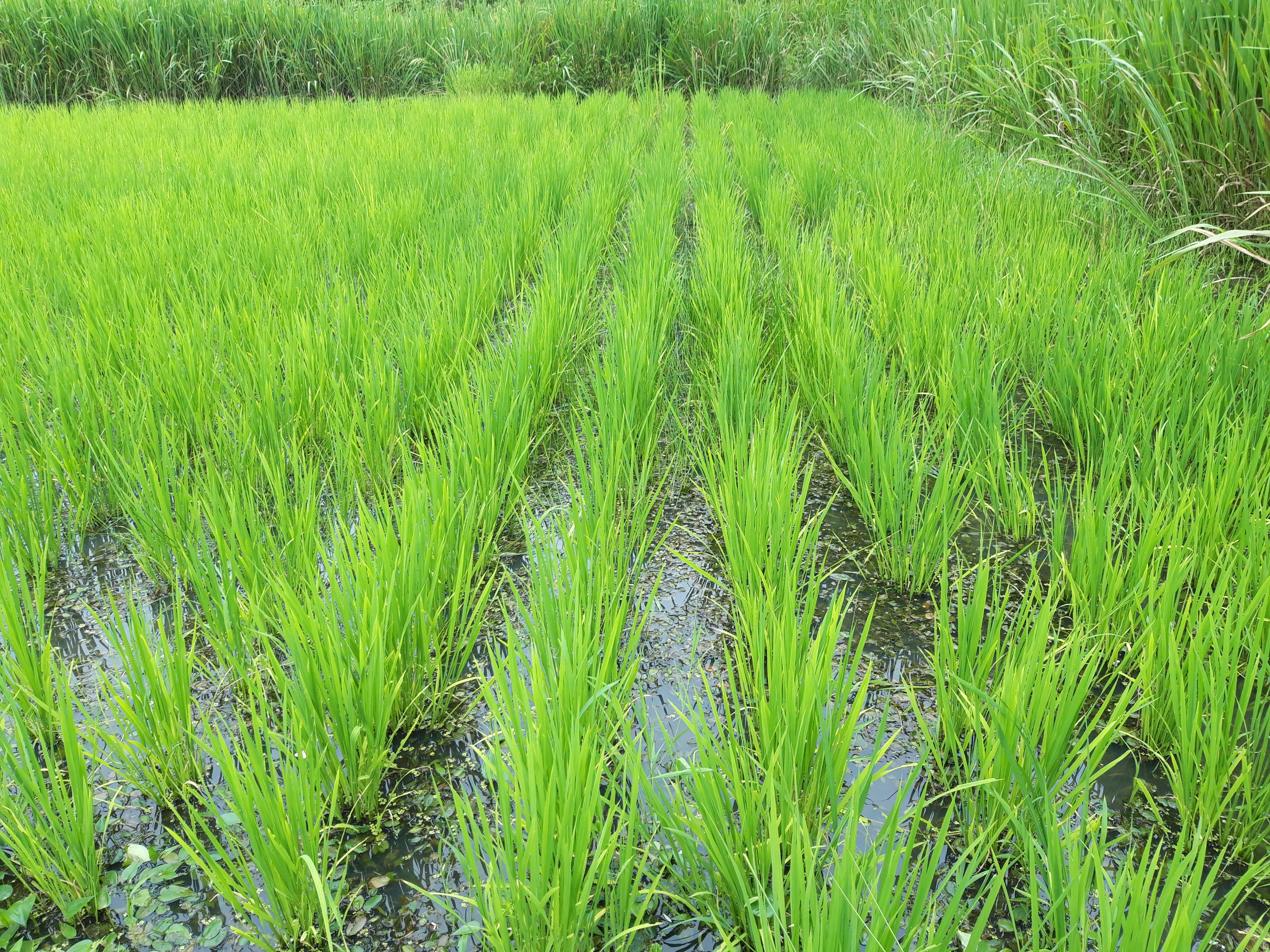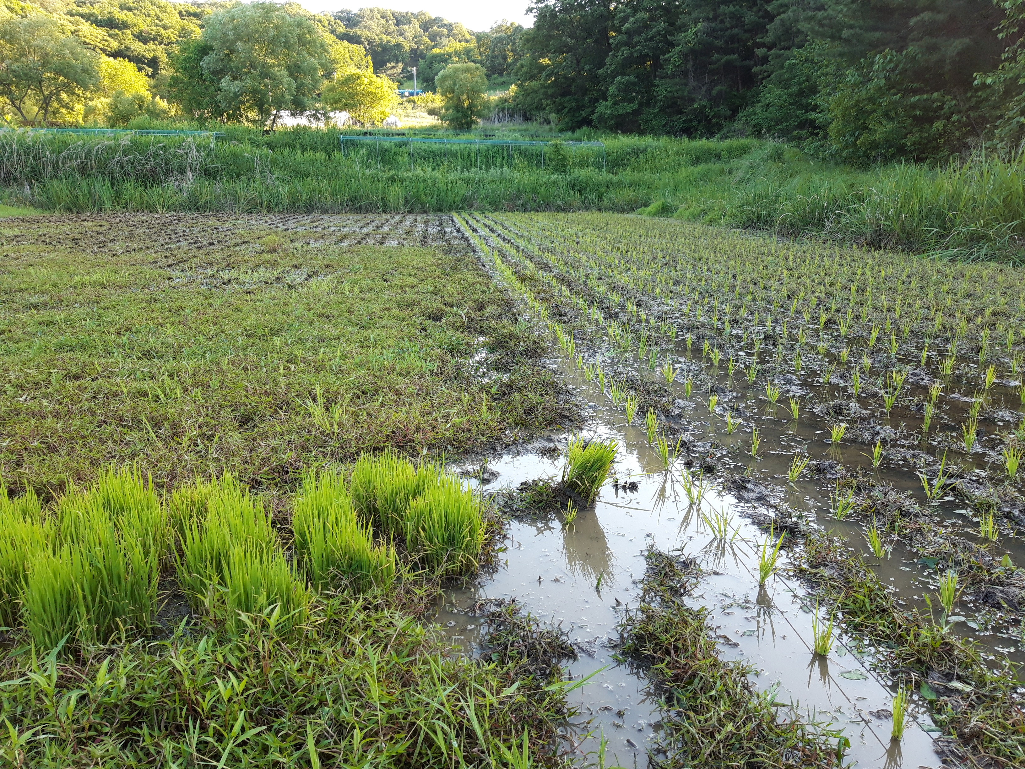 벼가 자라고 있고 물깊이는 10~15cm입니다.