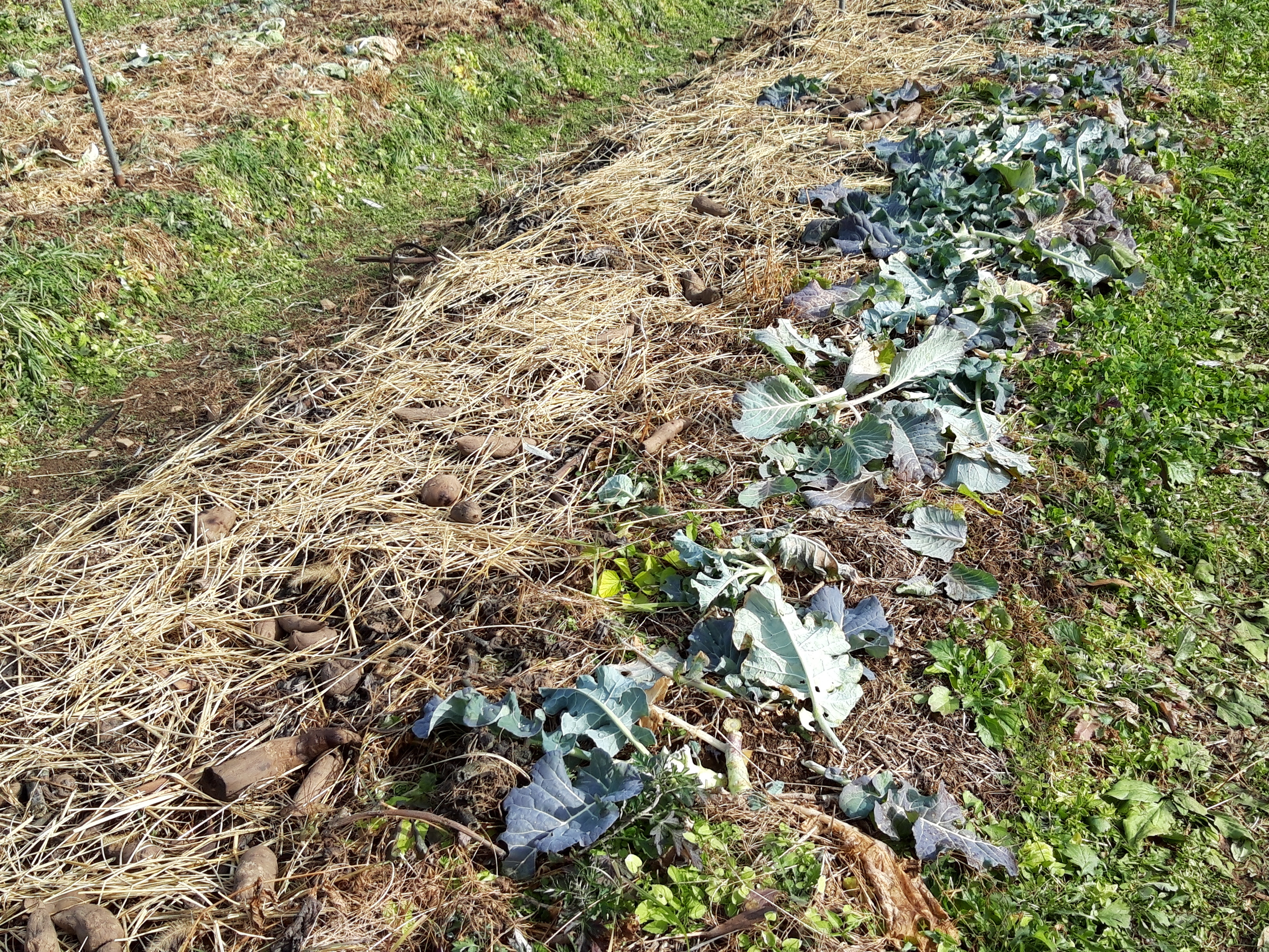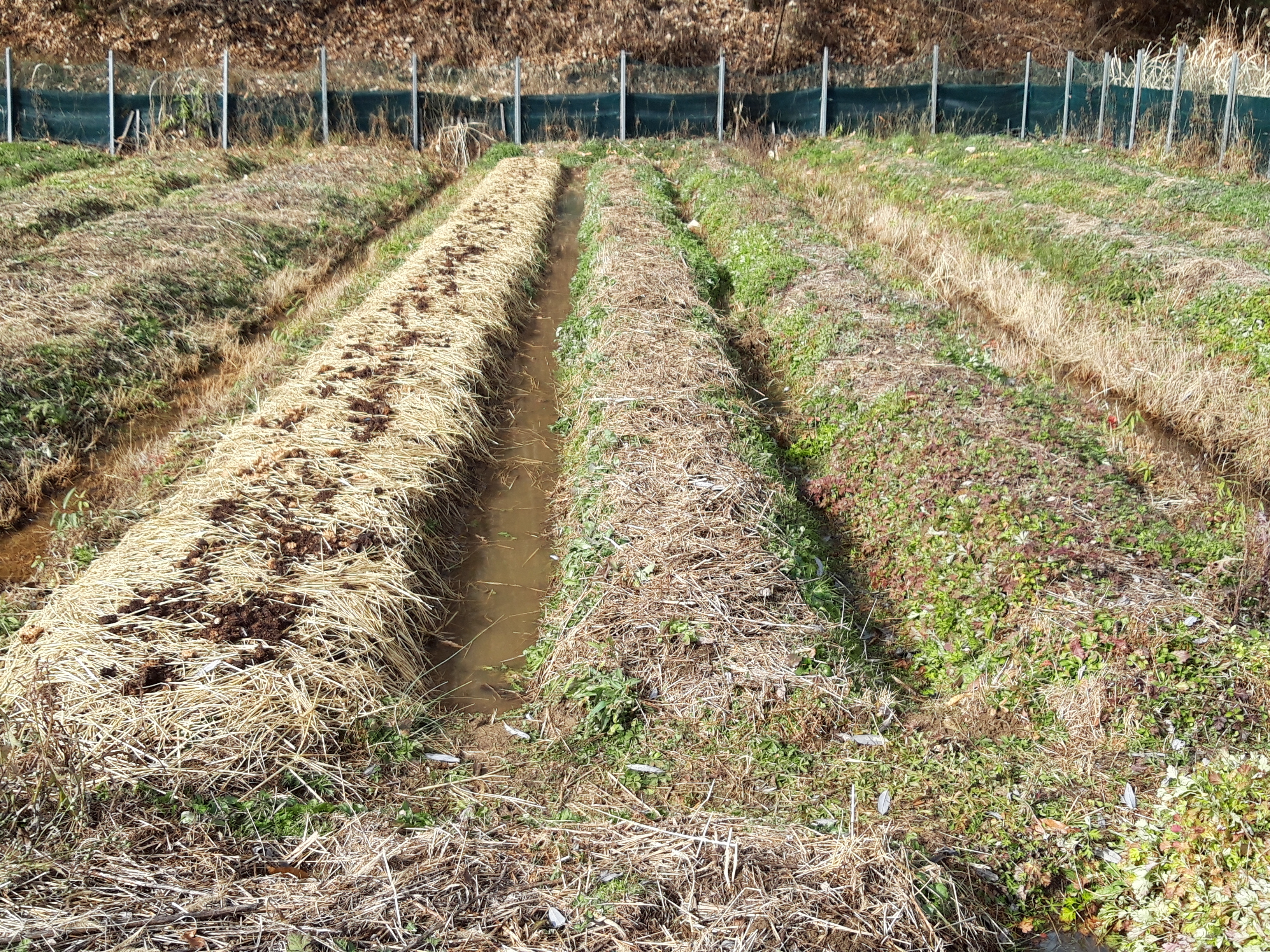 11월 어느 날입니다. 작물의 잔해가 두둑 위를 덮고 있습니다. 자연농 밭의 모습은 이렇습니다.