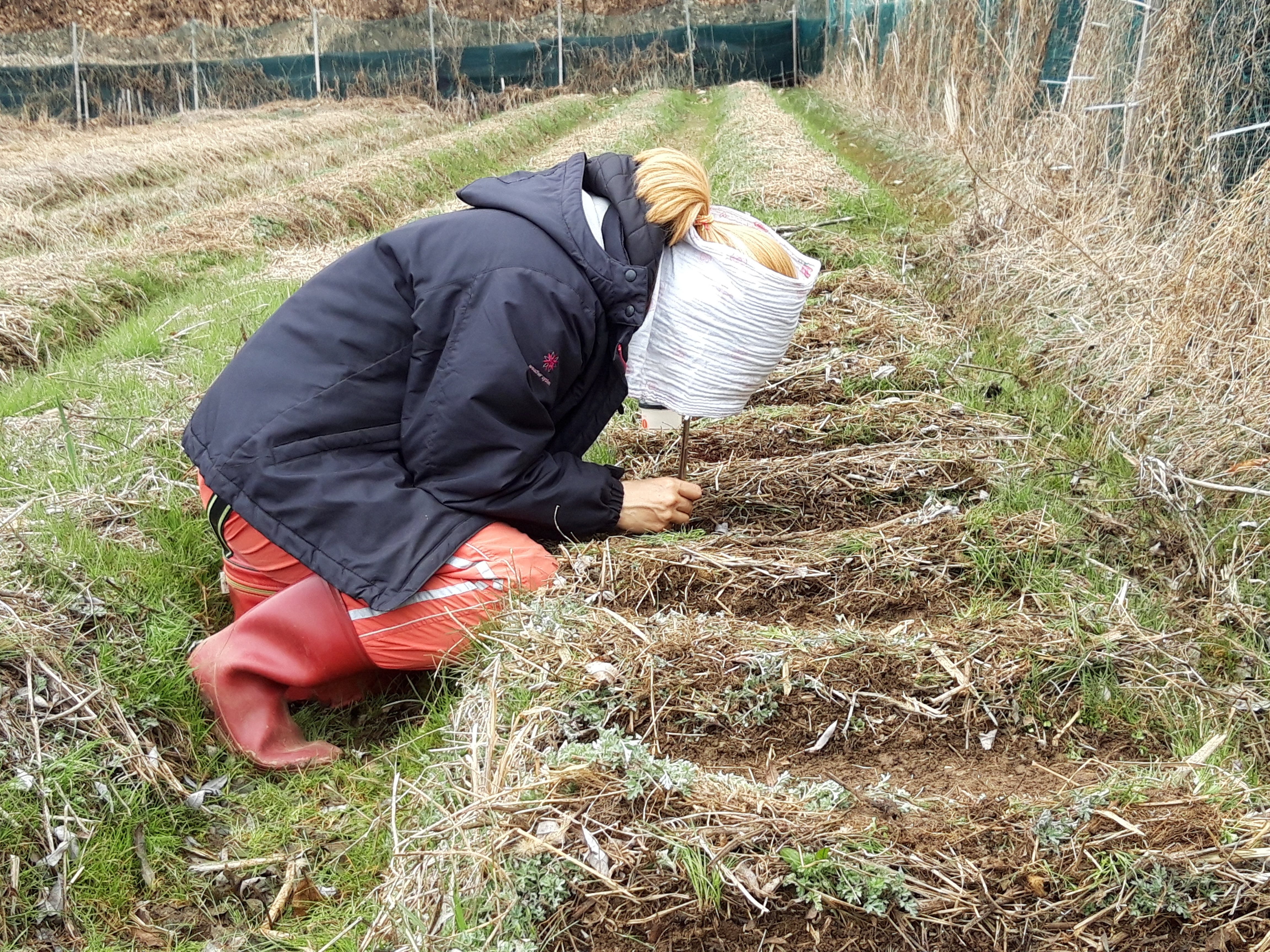 1년에 몇 번 일을 도와주는 제 아내입니다. 주로 씨앗 뿌리는 것을 도와줍니다.