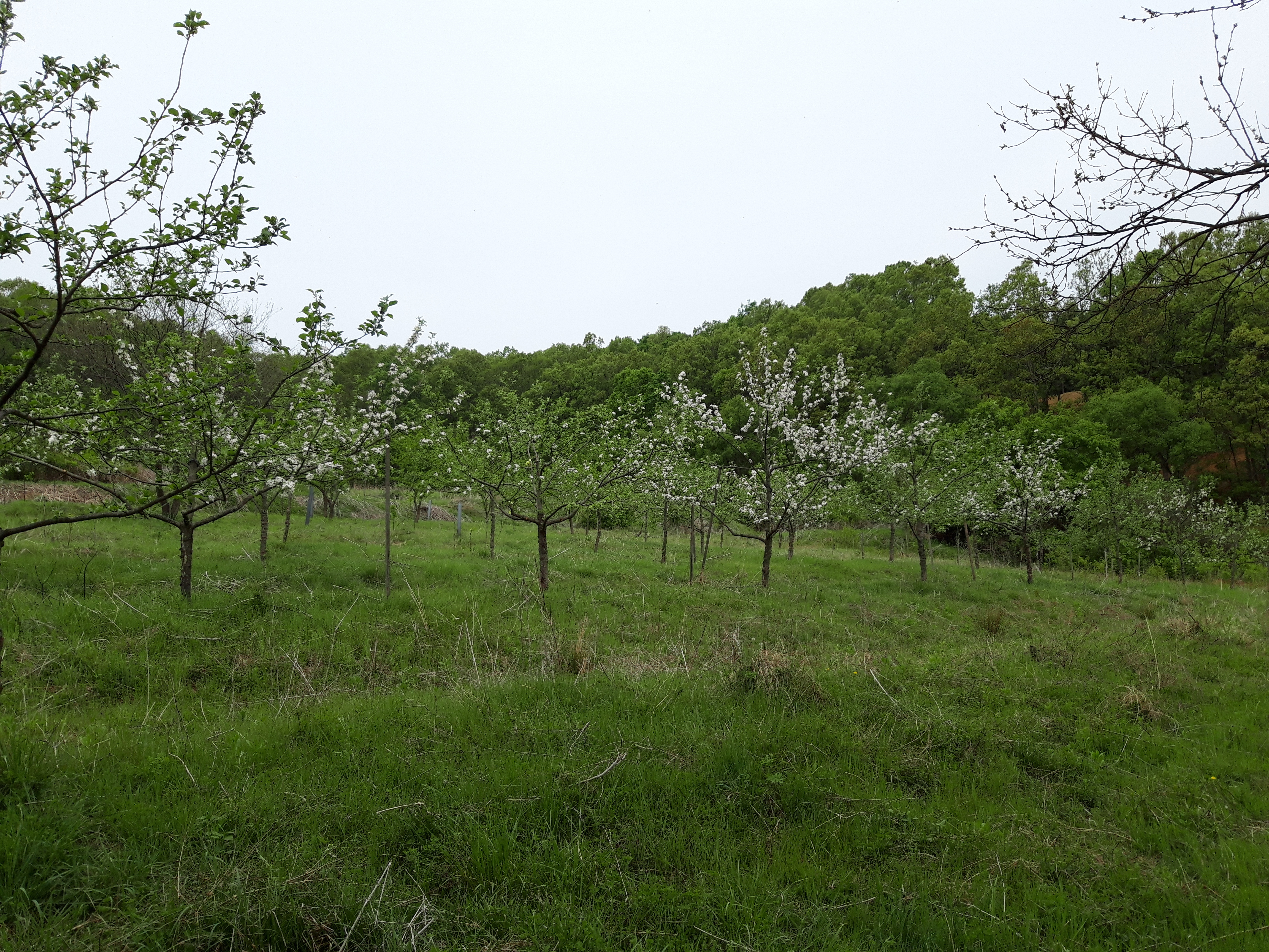 사과꽃은 피는데 수확은 아직 못했습니다.