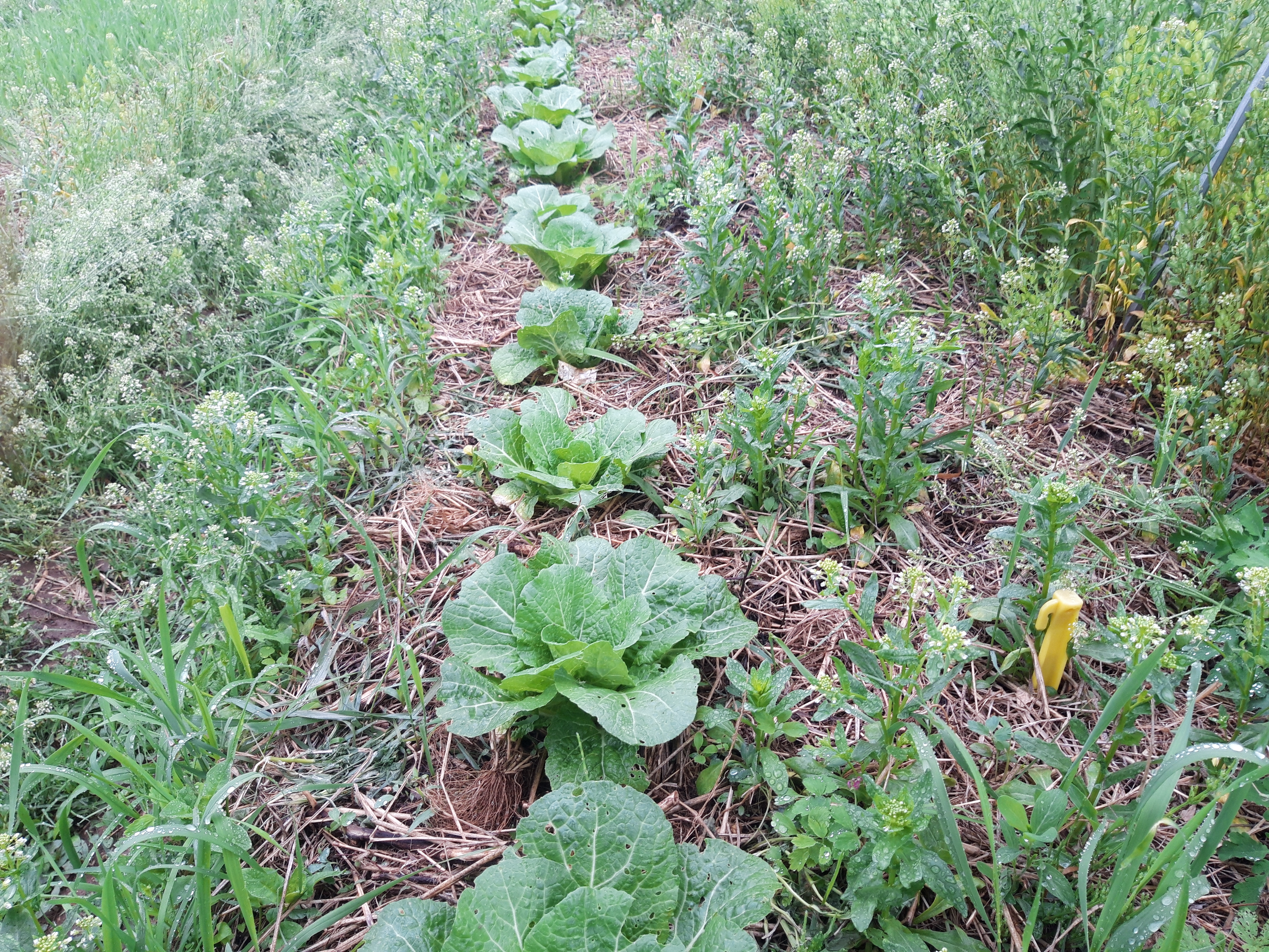 배추가 자라고 풀도 많이 자랐습니다.