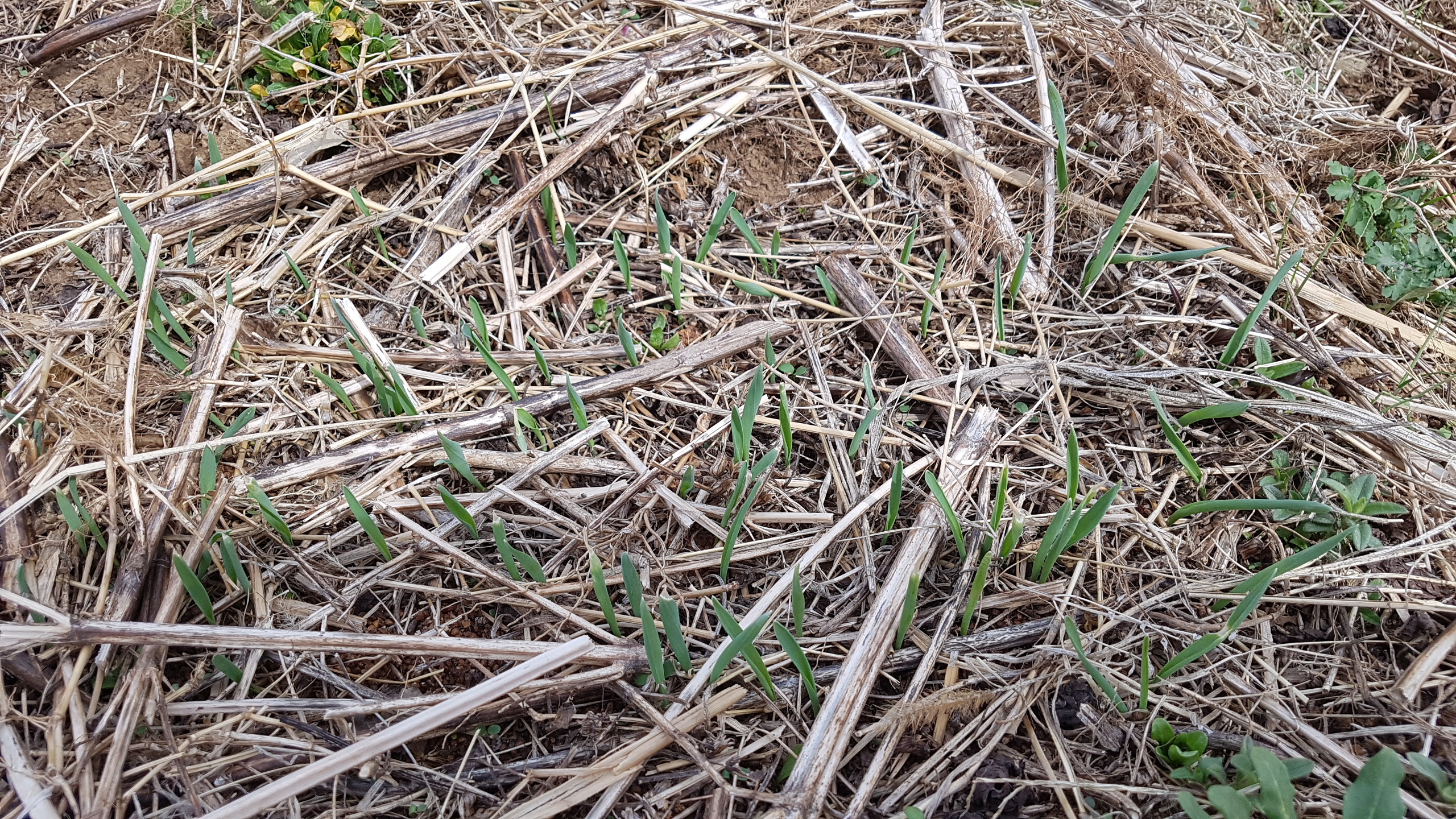 4. 이른 봄채소는 거의 모든 싹이 나와 자란다. 쌈채소 6종도 모두 싹이 나왔다. 그제께쯤 완두콩도 싹이 시작되었다. 오늘 낮에는 보리싹도 보았다. 내일은 보리싹을 덮었던 마른 풀들을 걷기로 한다. 계곡이랑의 백강밀싹도 보이긴 한다.