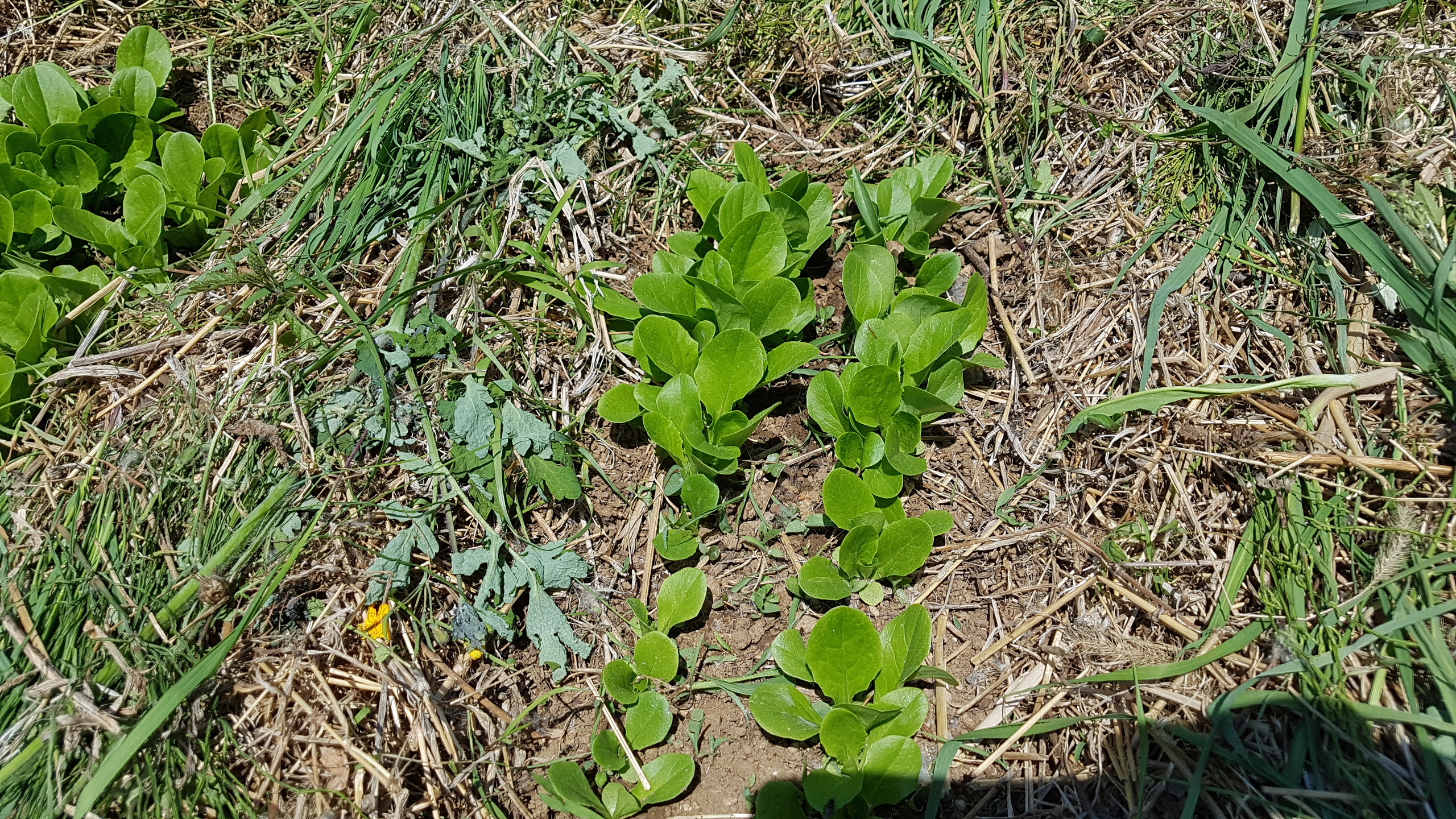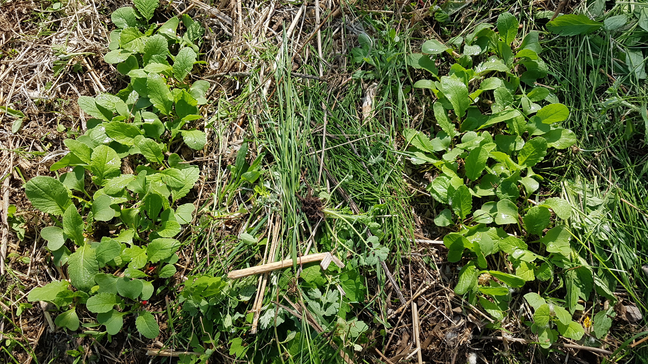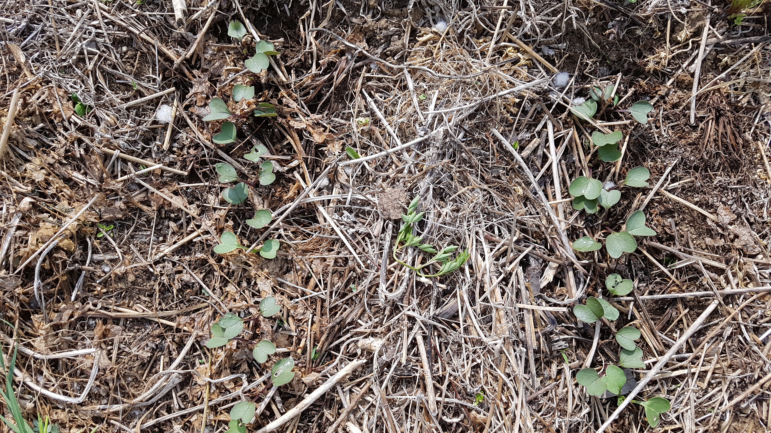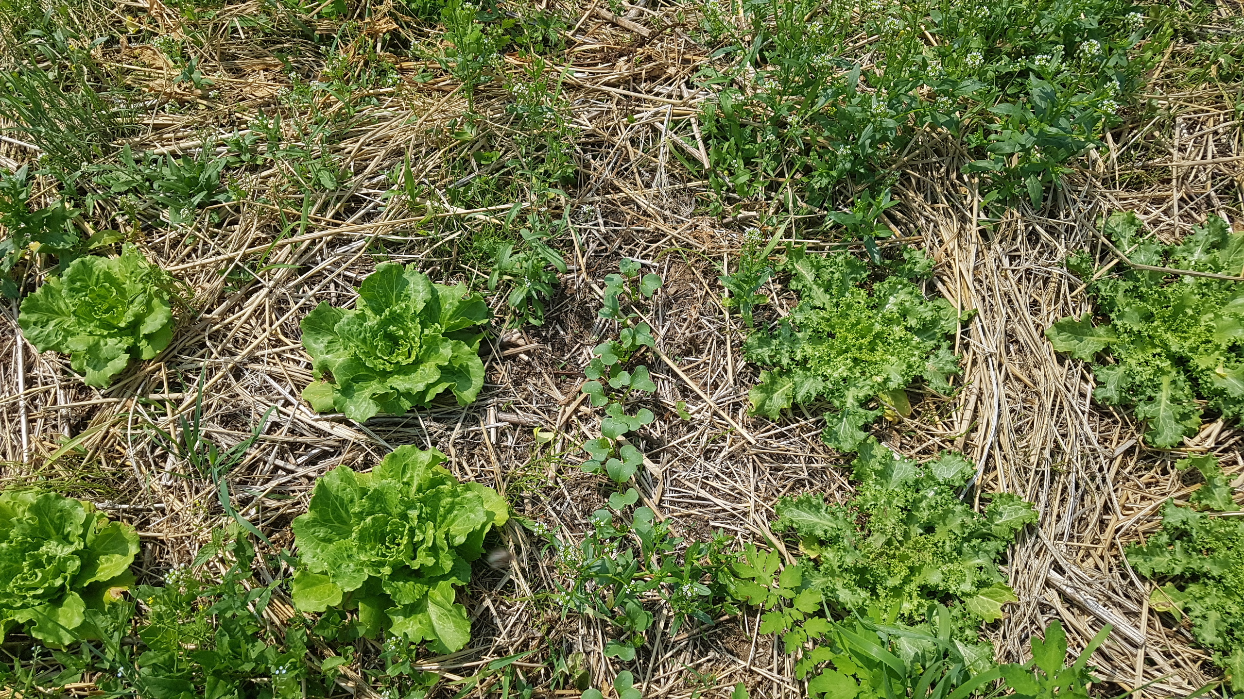 2. 쌈채소 직파분 싹정리를 마쳤다. 모판에 파종한 것과 같이 적오크린과 청겨자의 발아율이 많이 떨어져 적오크린은 거의 없고 청겨자는 몇 포기 되지 않는다. 다른 쌈채소도 작년에 비해 싹수가 많이 적다. 대충 풀을 뽑아내고 1:2:3 오뜨물을 주었다. 적오크린의 싹이 부진하여 다른 종류의 붉은 쌈채소를 고려해 본다.
