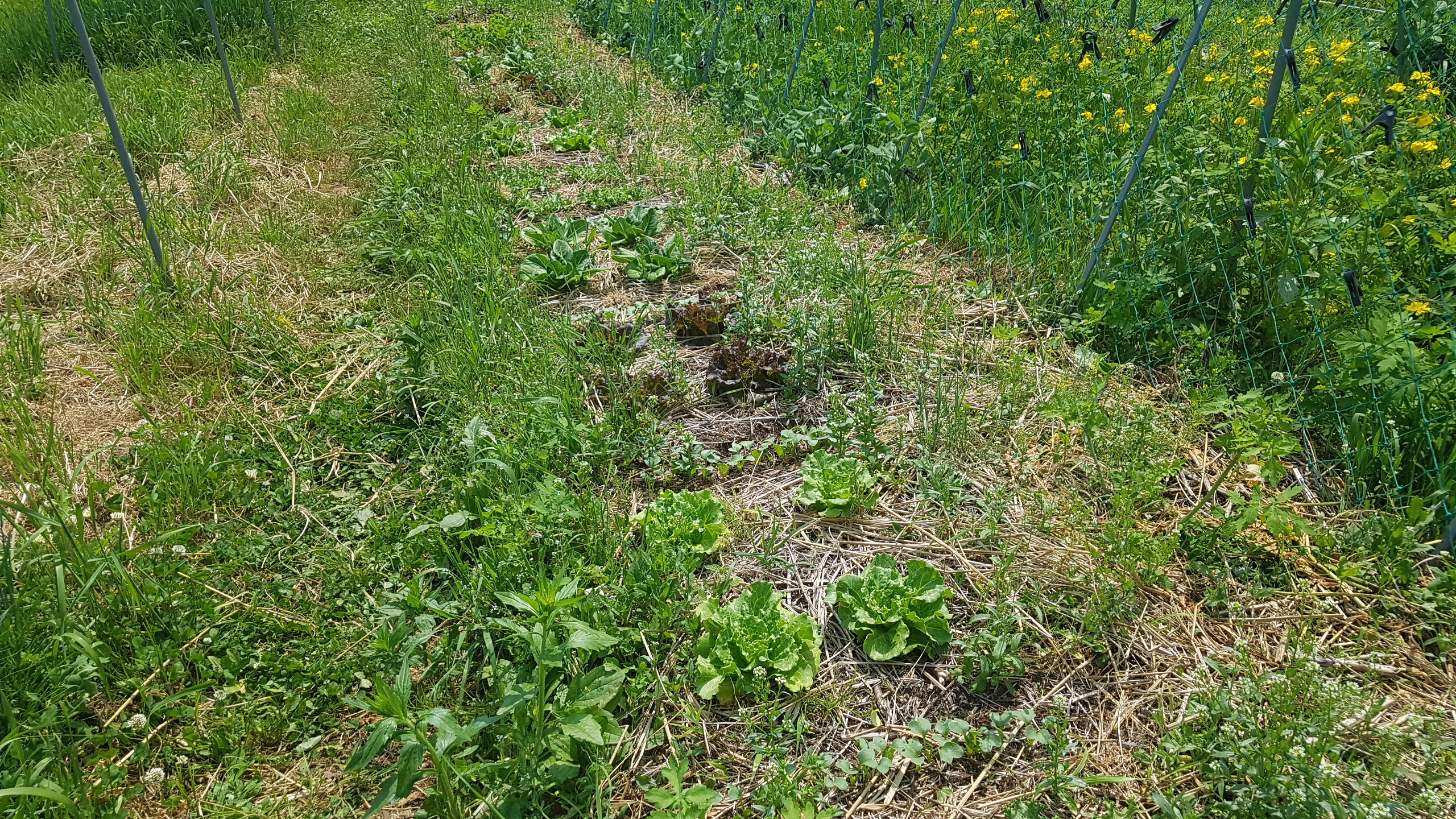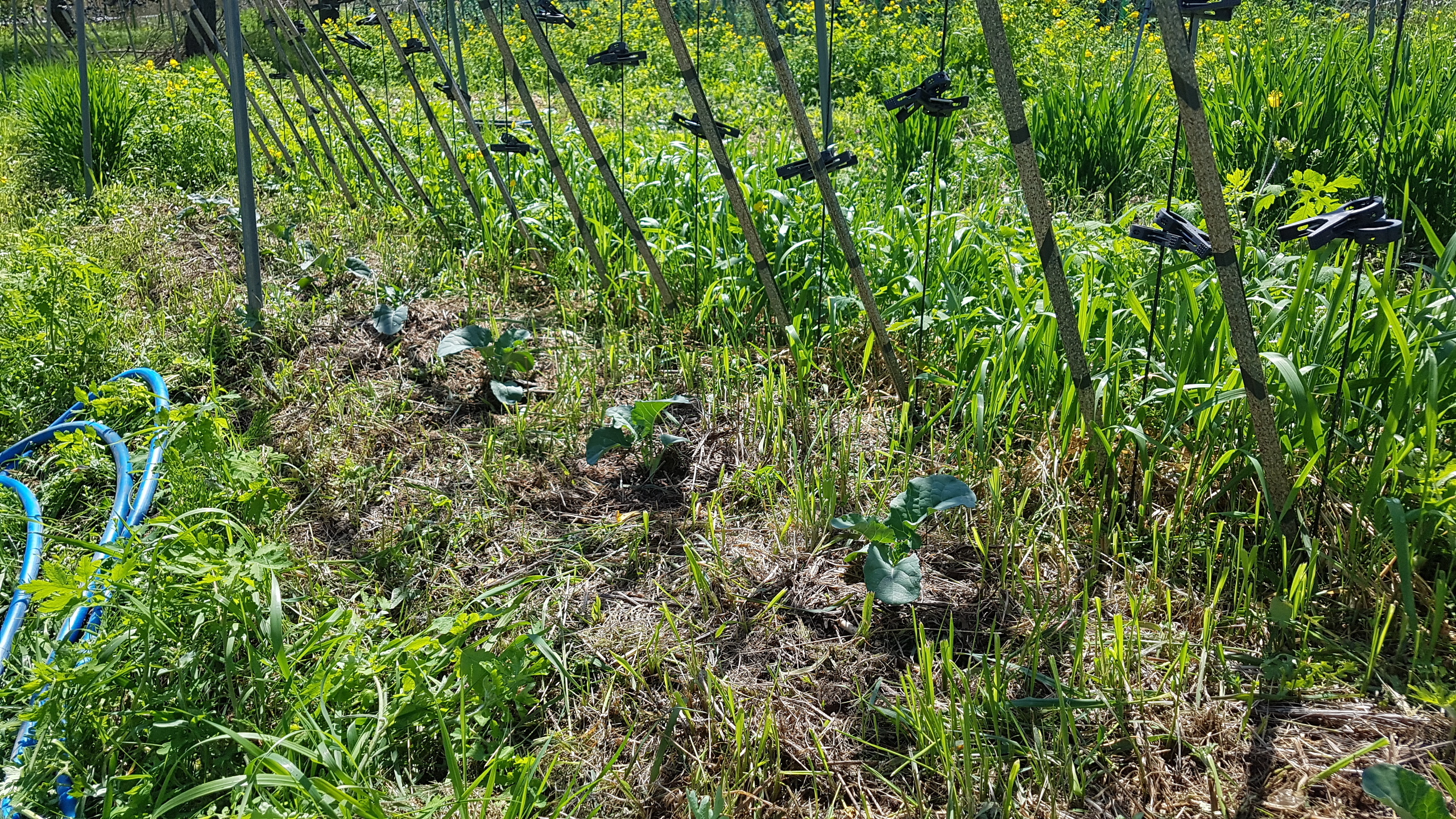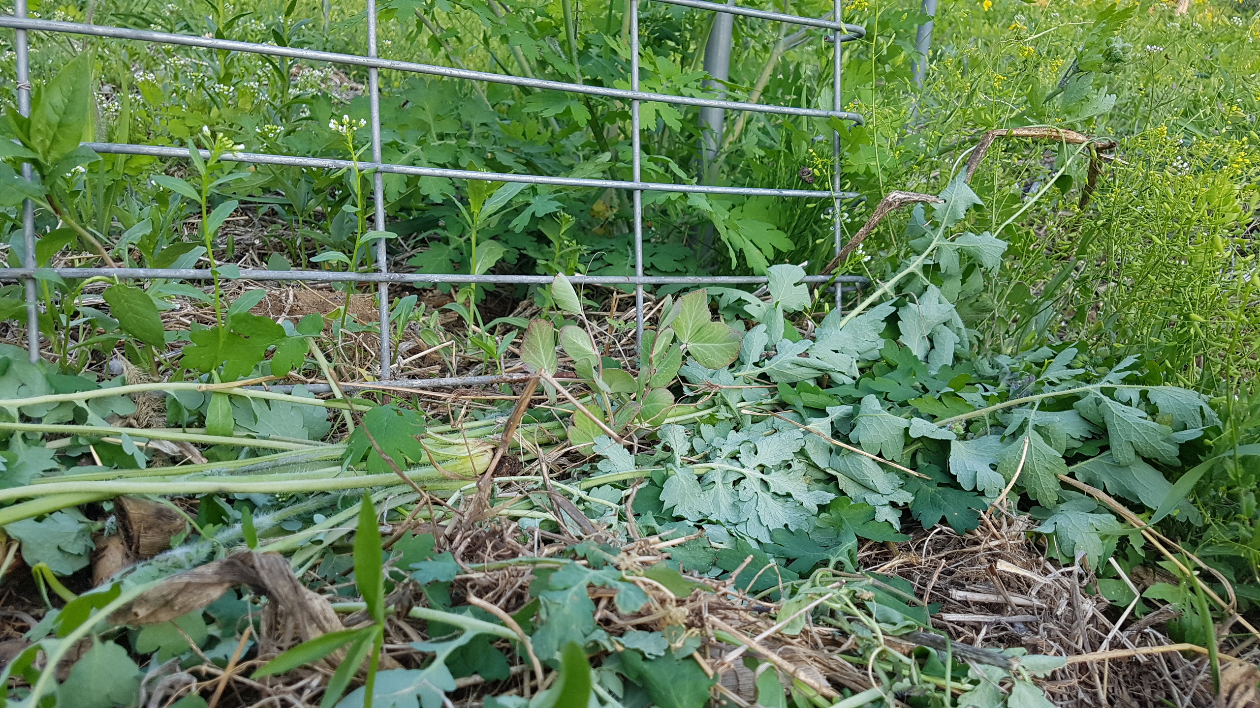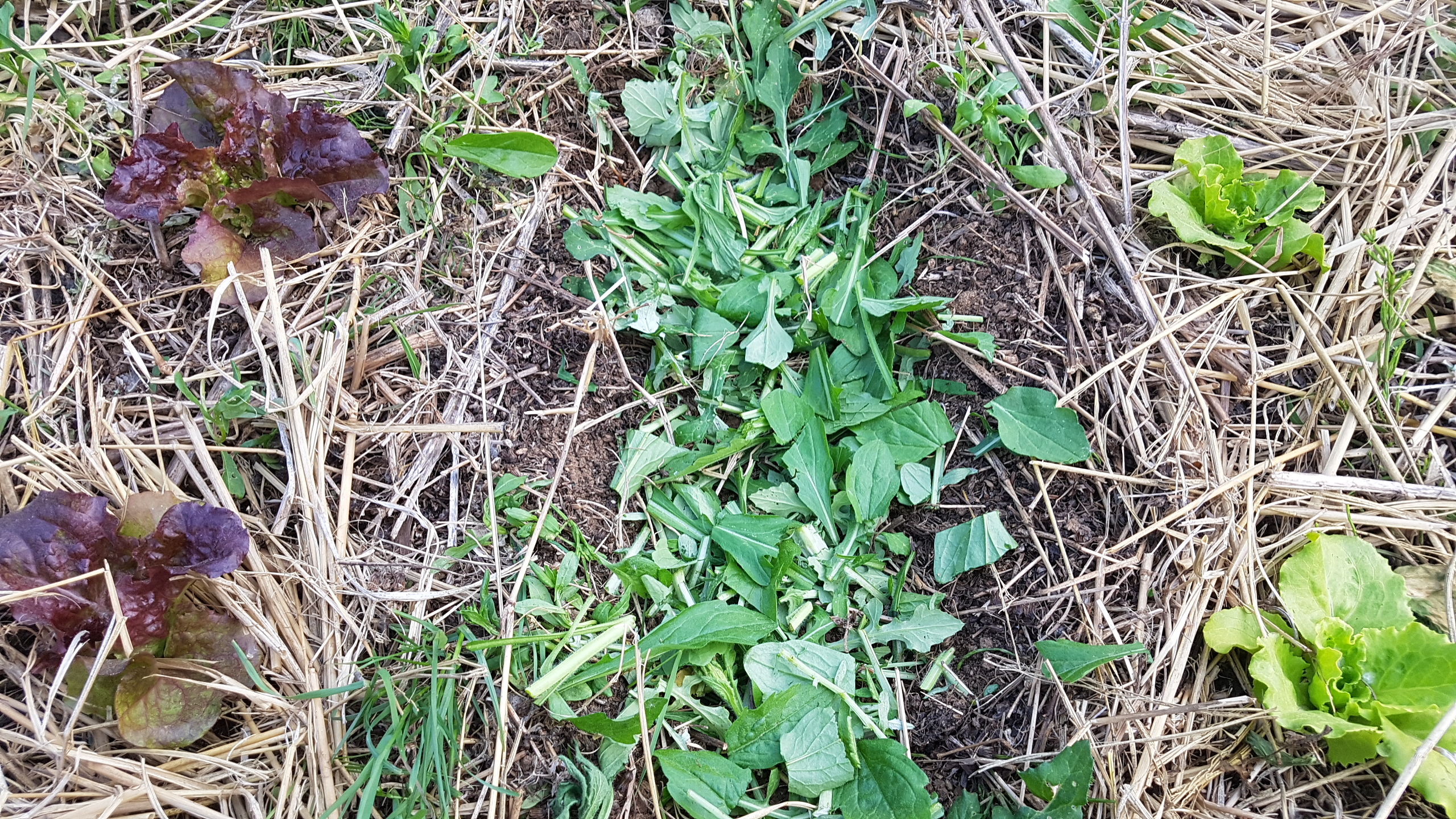 2. 쌈채소 직파분 싹정리를 마쳤다. 모판에 파종한 것과 같이 적오크린과 청겨자의 발아율이 많이 떨어져 적오크린은 거의 없고 청겨자는 몇 포기 되지 않는다. 다른 쌈채소도 작년에 비해 싹수가 많이 적다. 대충 풀을 뽑아내고 1:2:3 오뜨물을 주었다. 적오크린의 싹이 부진하여 다른 종류의 붉은 쌈채소를 고려해 본다.
