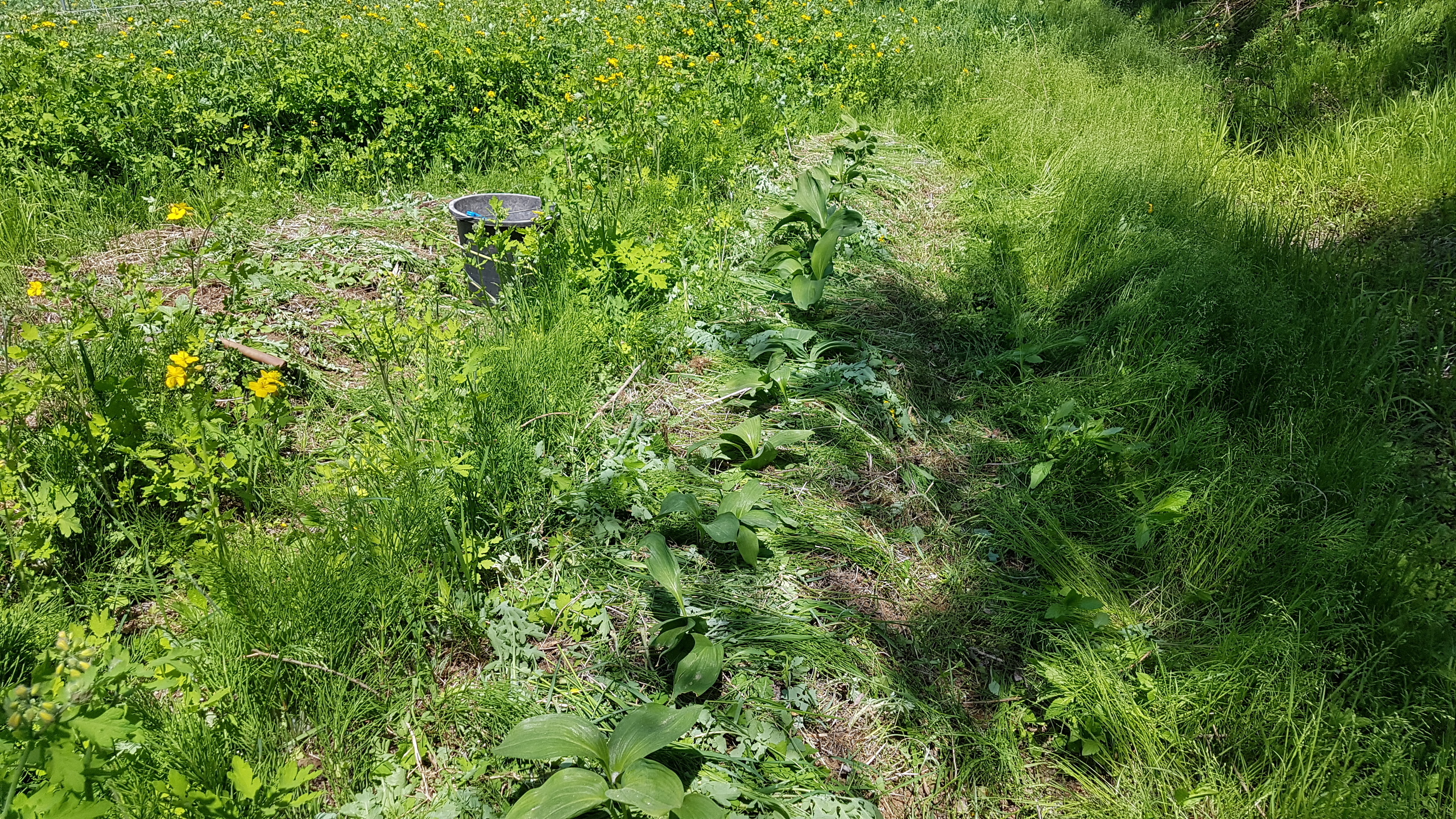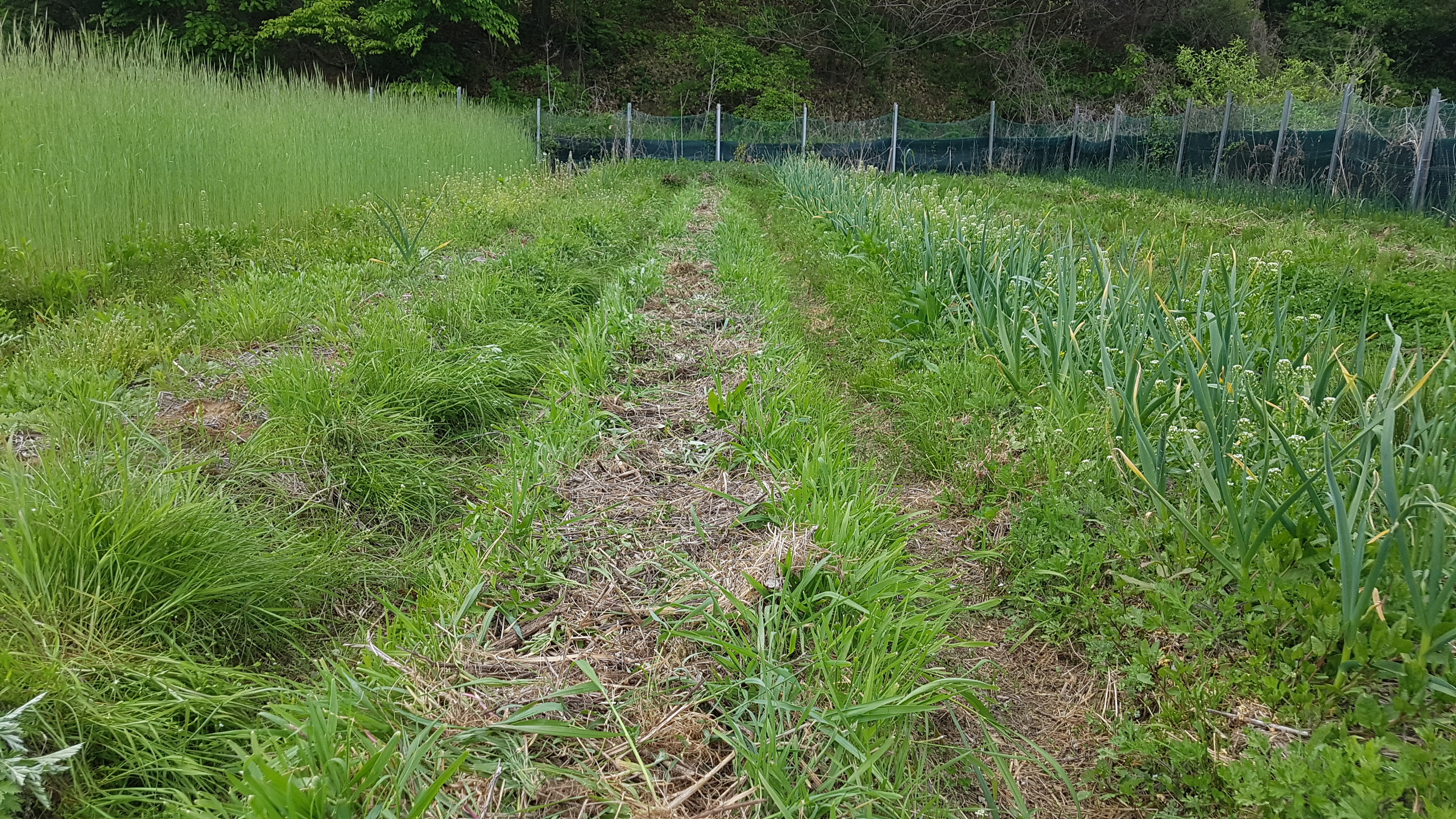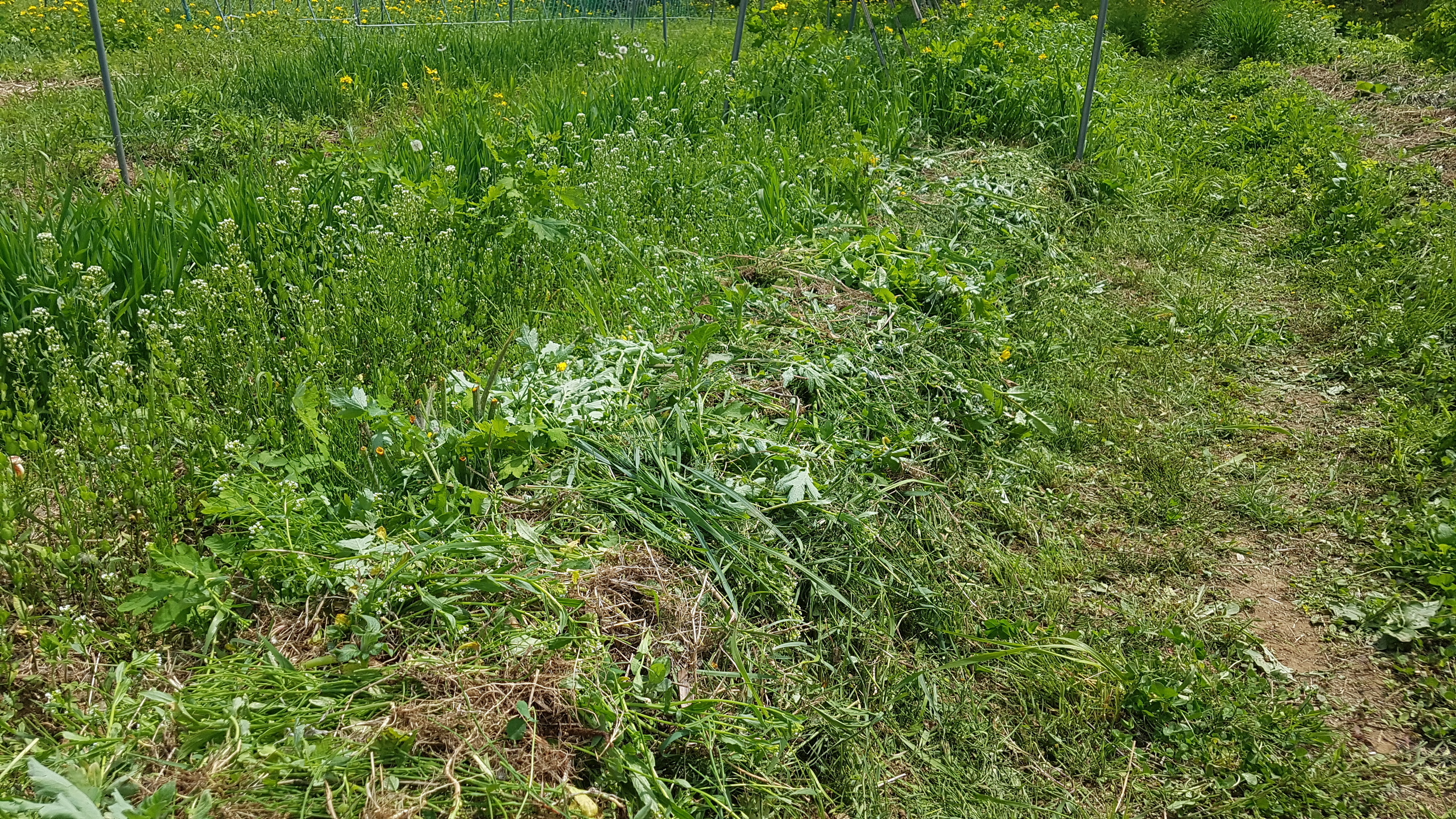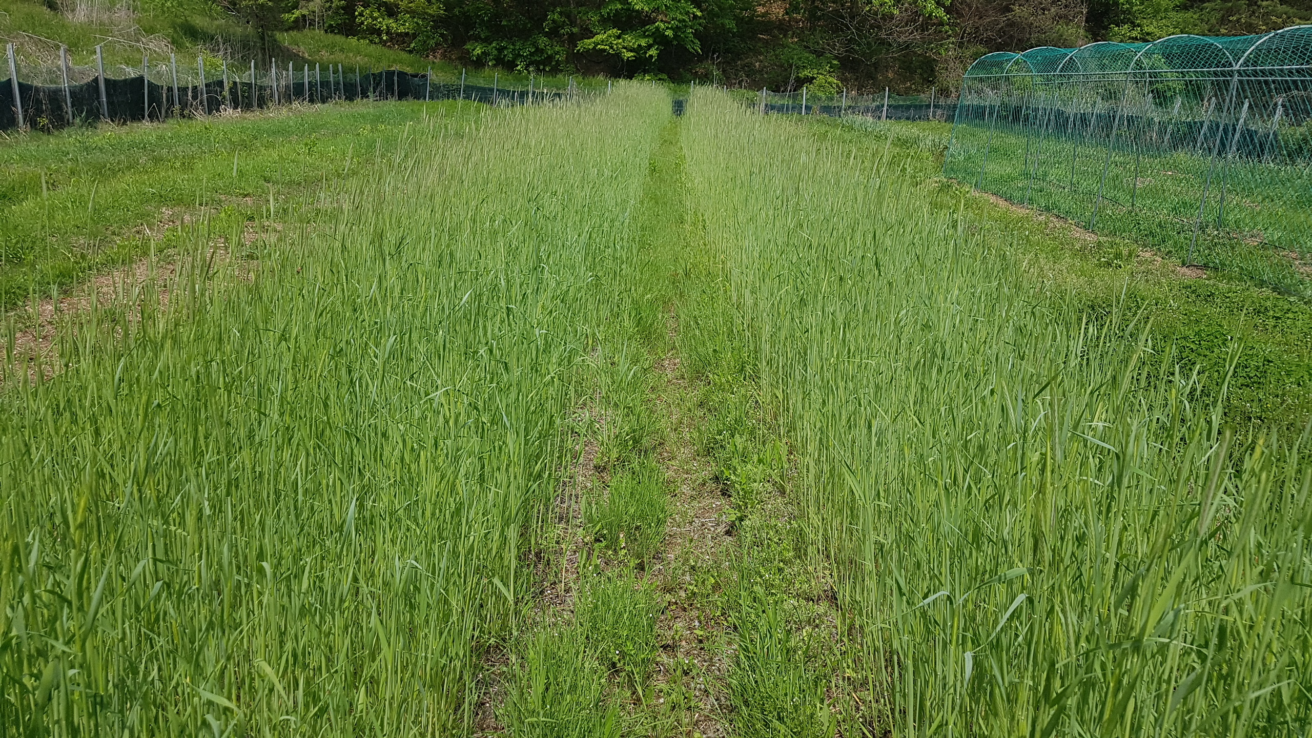 3. 어제 길밭의 관목들 아래 긴 풀을 베어 깔고 백강밀을 파종한 계곡이랑의 풀도 베었다. 밀, 호밀, 보리 등은 이맘때쯤 한번 풀을 정리해 주어야 수확할 때 섞이지 않는다.