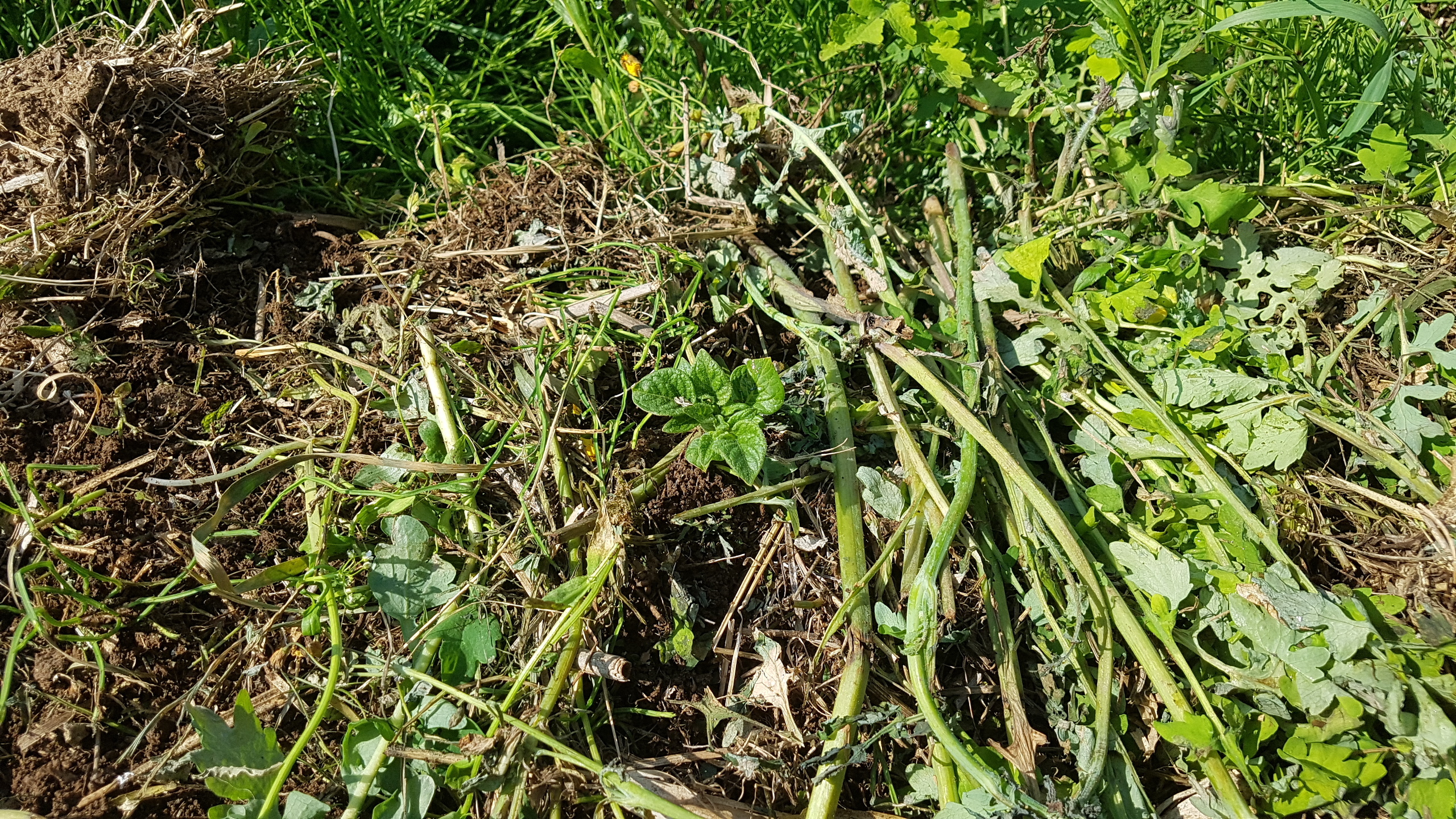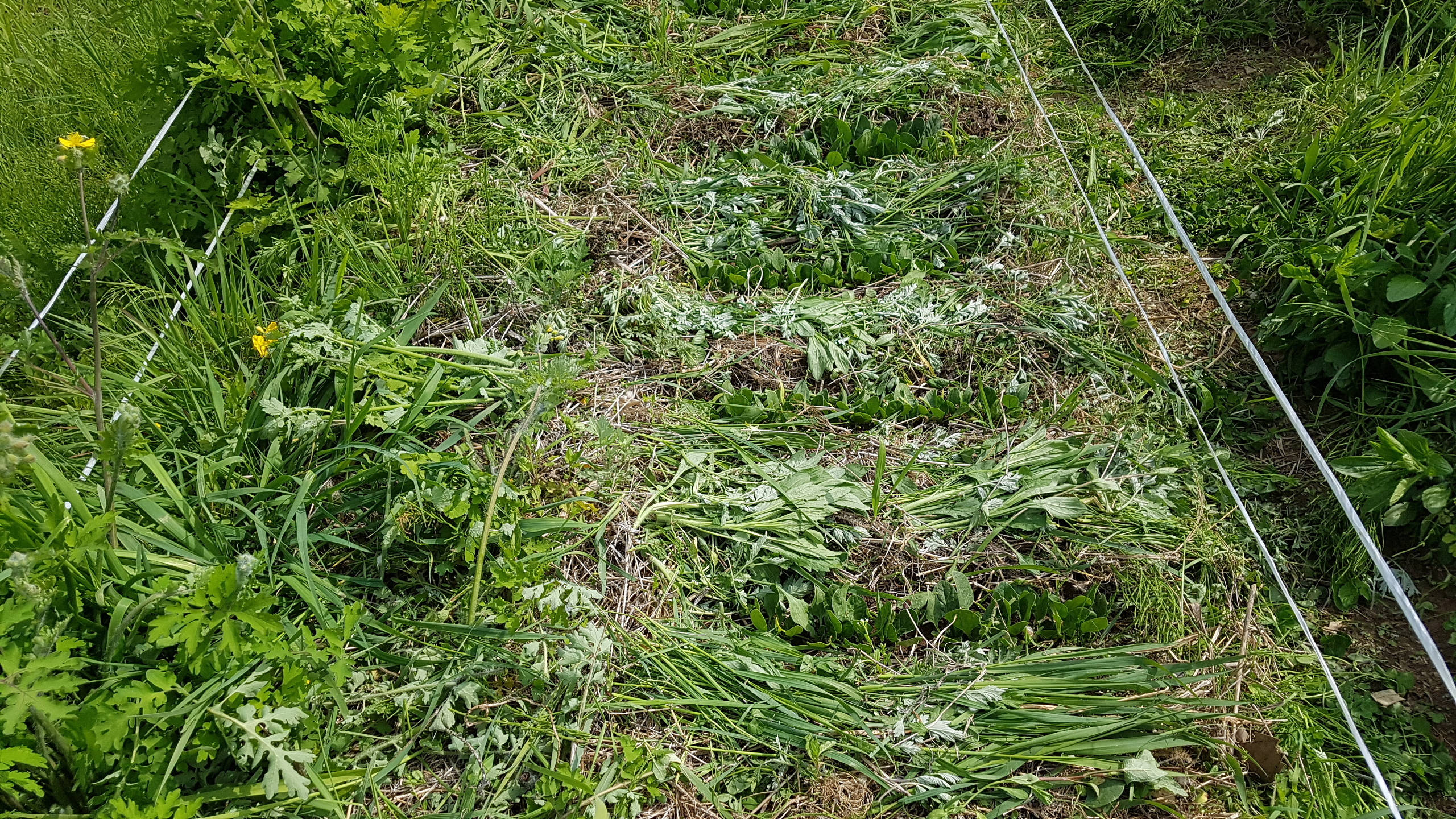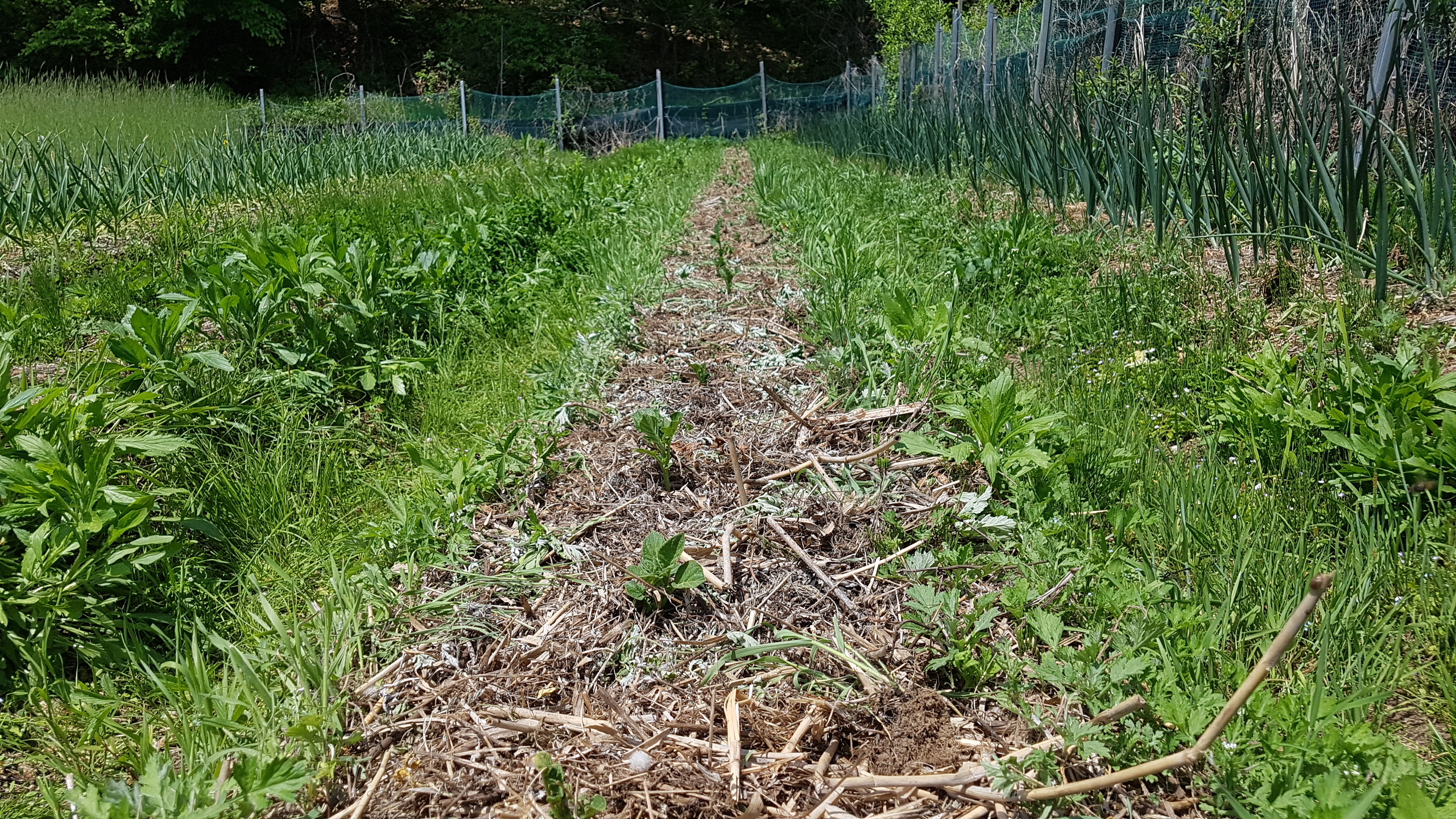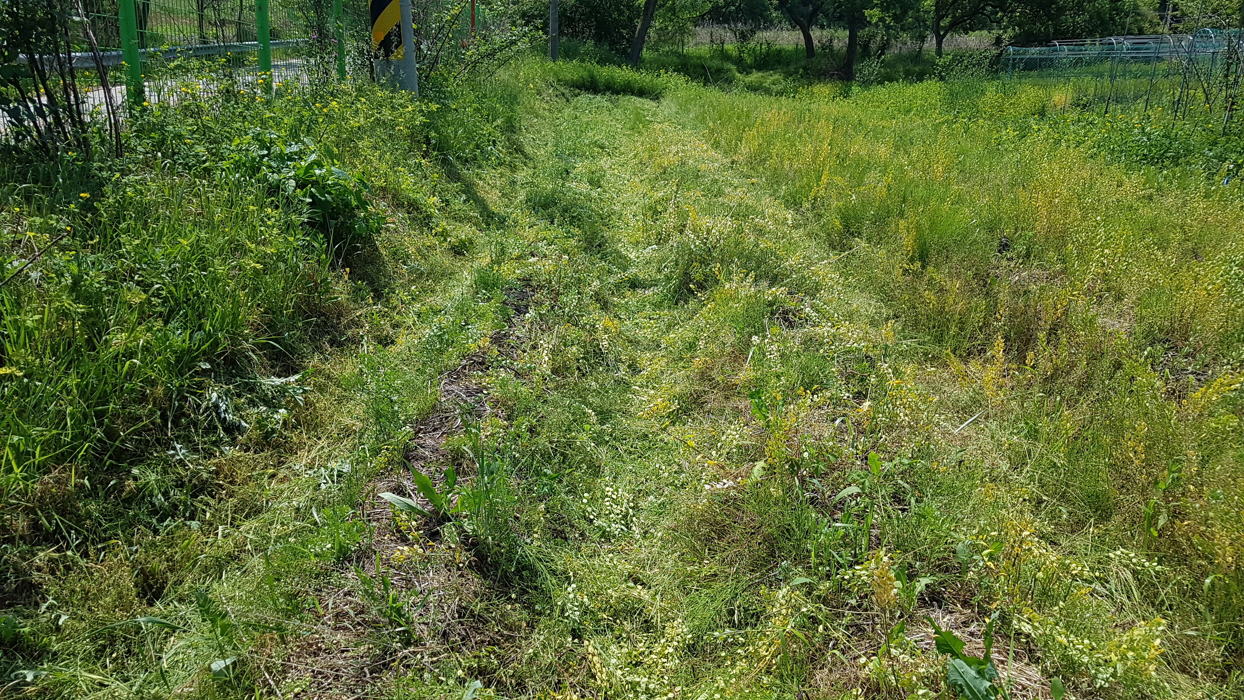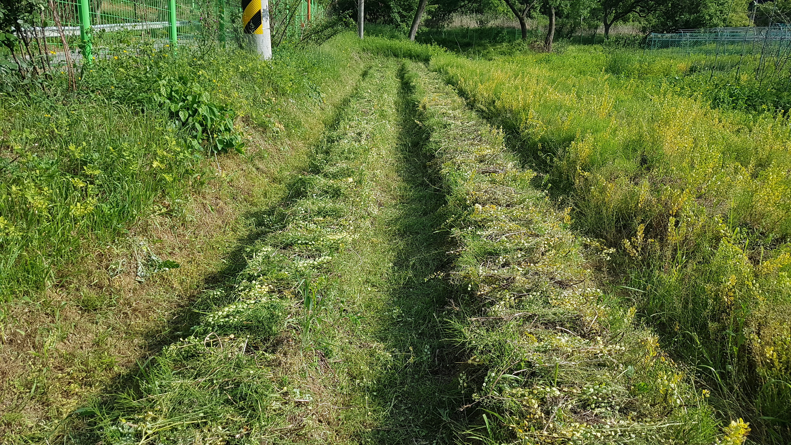 3. 어제 길밭의 관목들 아래 긴 풀을 베어 깔고 백강밀을 파종한 계곡이랑의 풀도 베었다. 밀, 호밀, 보리 등은 이맘때쯤 한번 풀을 정리해 주어야 수확할 때 섞이지 않는다.