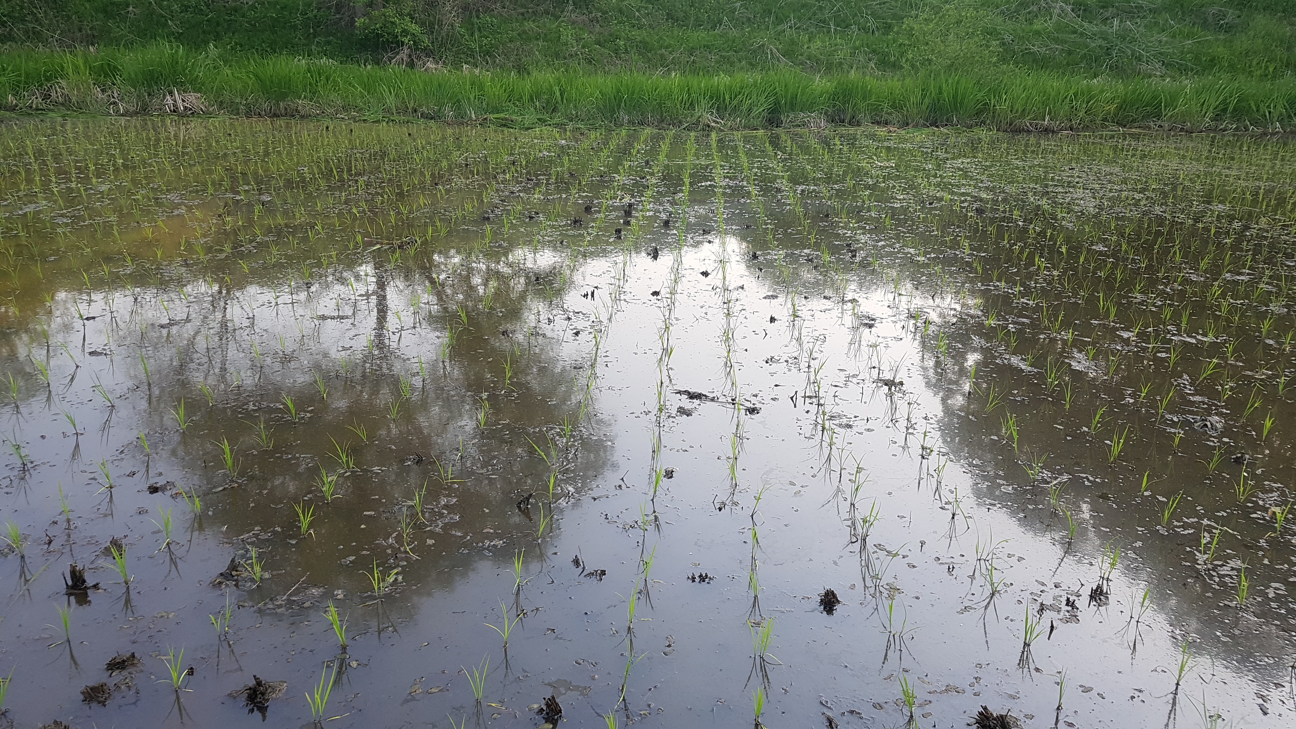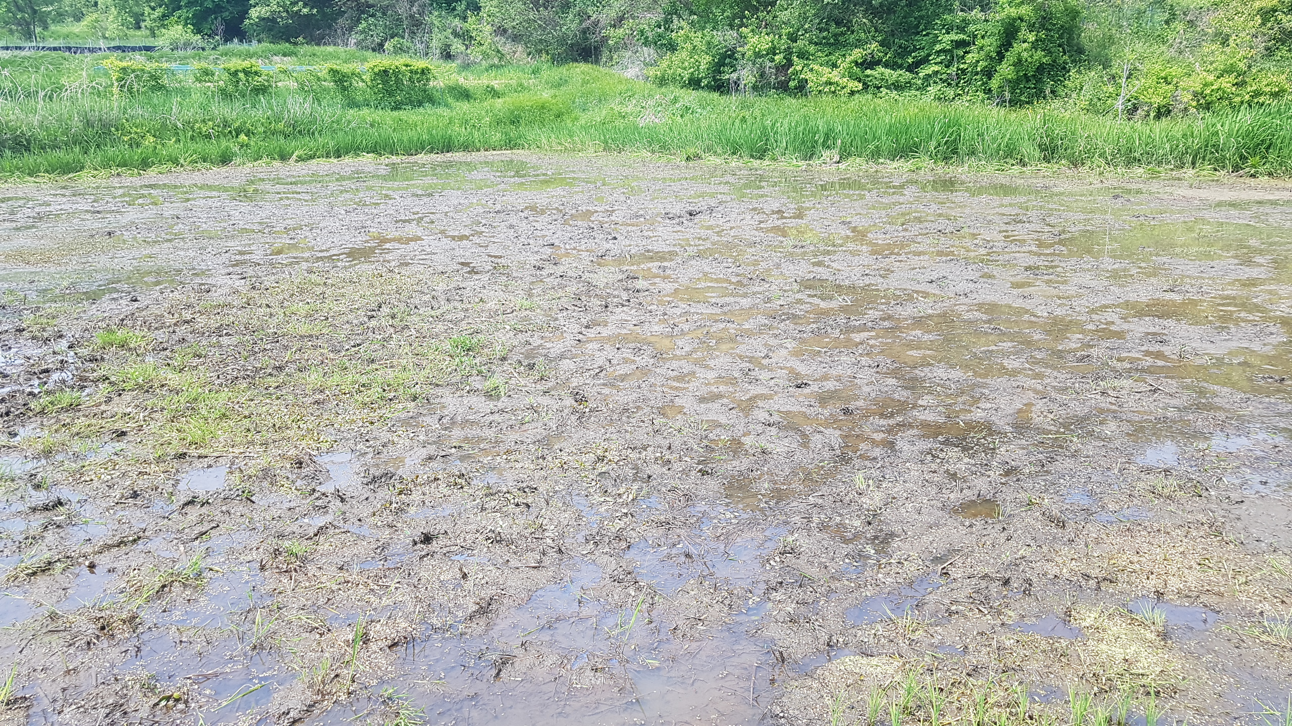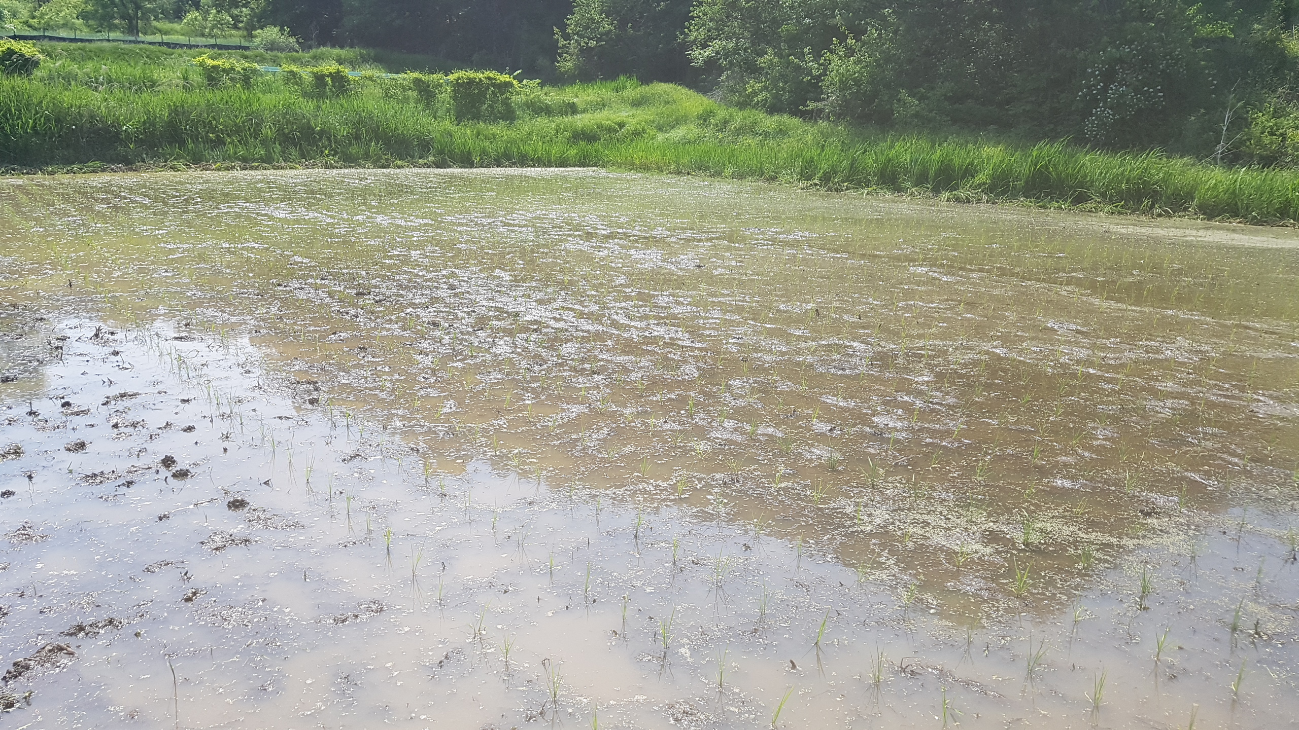 2. 볏모가 부족해 마무리하지 못했던 논국의 모내기도 마쳤다. 논죽에서 가져온 3판을 더해 1차 모내기 78줄에 15줄을 더해 93줄을 심었다. 4줄 정도 더 심을 수 있는데 모가 부족하다. 1차 모내기때 1포기씩 12~13주 심은 줄 인근에 1포기씩 1줄 더 심고, 3포기씩 2줄을 심어 모가 분얼하는 모습을 관찰하기로 했다. 논죽처럼 수위를 2~3cm 높여 놓았다.