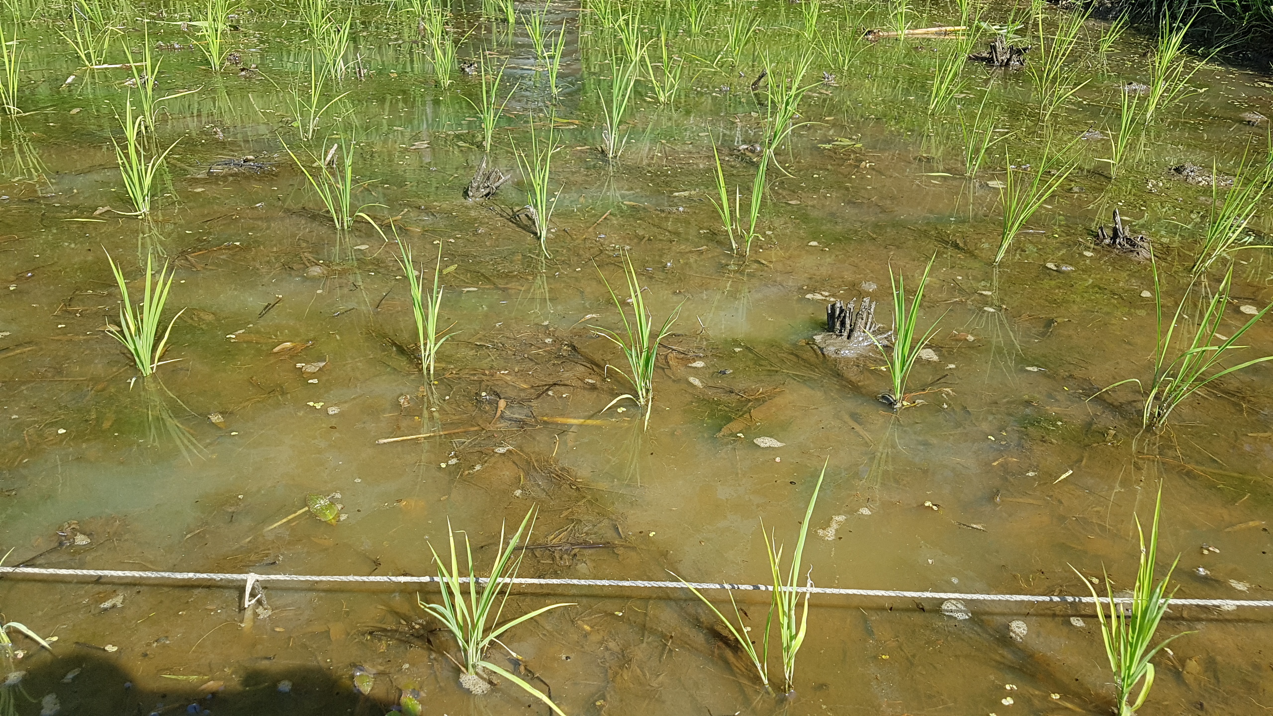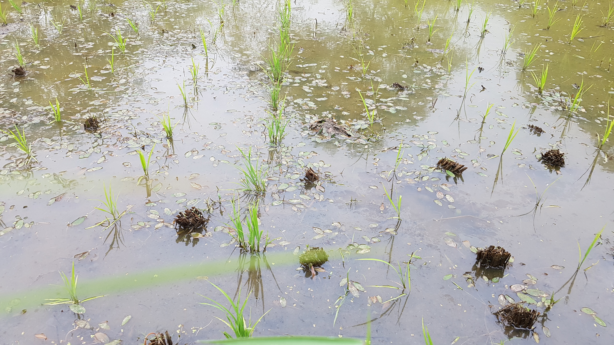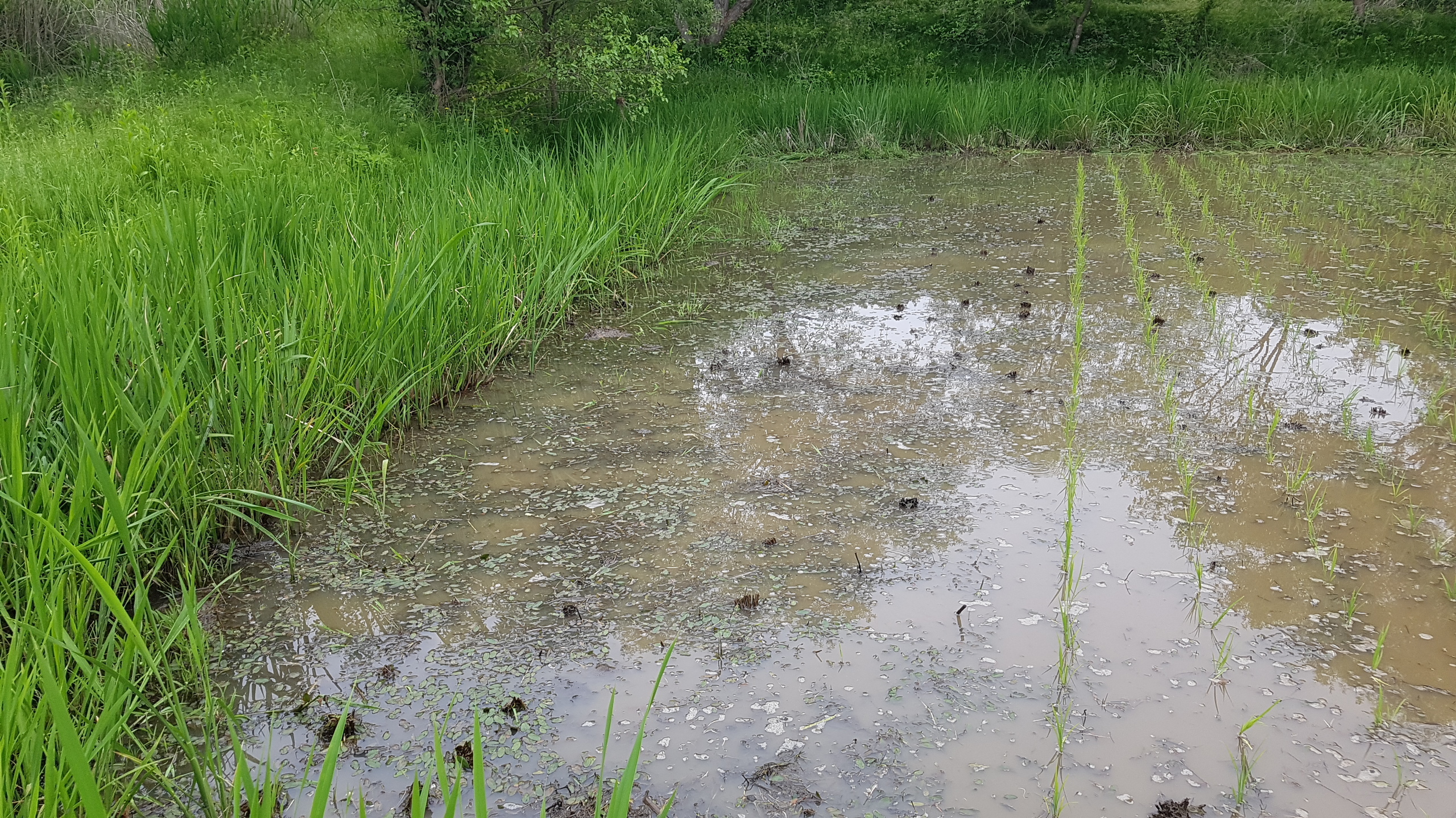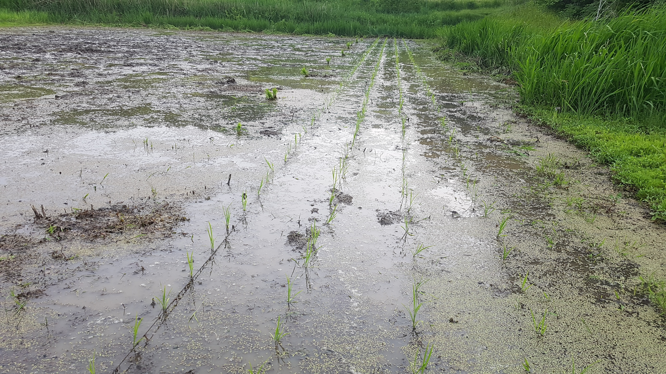 2. 볏모가 부족해 마무리하지 못했던 논국의 모내기도 마쳤다. 논죽에서 가져온 3판을 더해 1차 모내기 78줄에 15줄을 더해 93줄을 심었다. 4줄 정도 더 심을 수 있는데 모가 부족하다. 1차 모내기때 1포기씩 12~13주 심은 줄 인근에 1포기씩 1줄 더 심고, 3포기씩 2줄을 심어 모가 분얼하는 모습을 관찰하기로 했다. 논죽처럼 수위를 2~3cm 높여 놓았다.