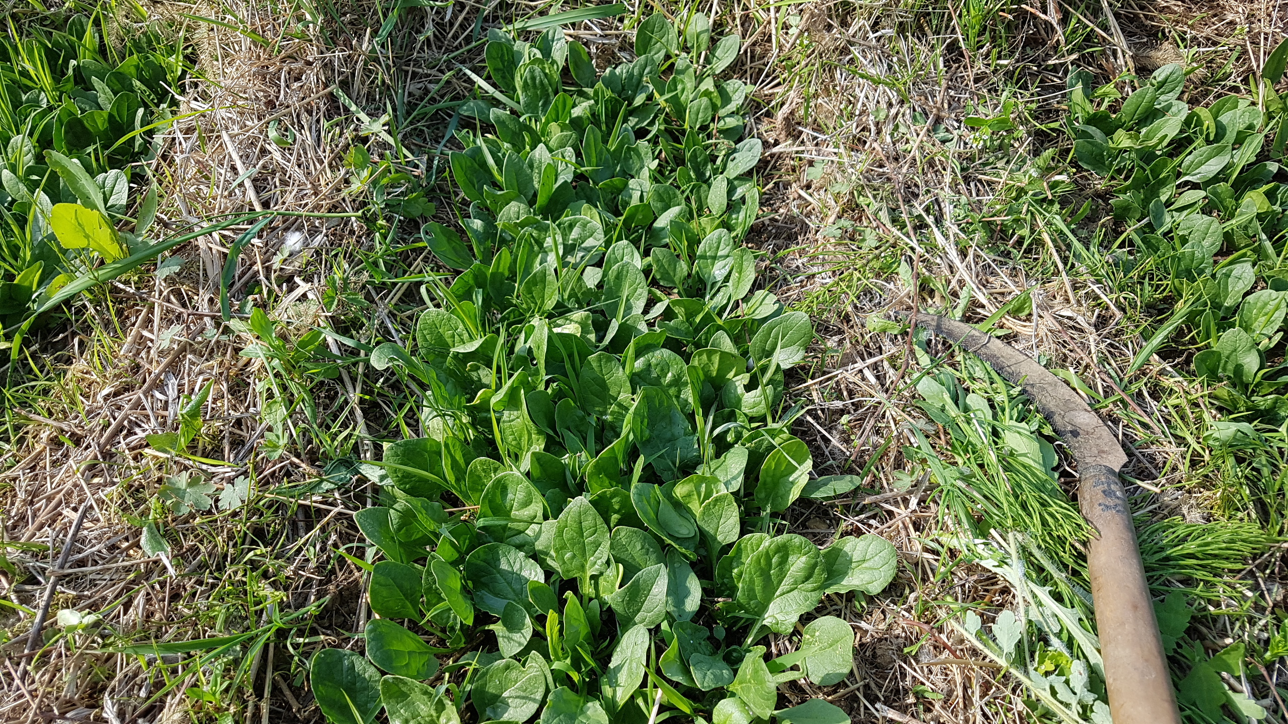 5. 어제와 오늘 오전까지 시금치 싹을 정리했다. 시금치는 7~8cm 길이로 자라는 중이다. 1cm간격을 두고 파종하여 싹이 가득 찼다. 1줄 파종한 곳은 풀을 정리하기 쉬우나 2~3줄 파종한 곳에는 시금치 사이사이에 풀들이 있으나 시금치의 성장에 부담이 되지 않을 정도이고 뽑아낼 수도 없다. 주변에 손가락이 닿을 정도의 풀이나 중간중간 시금치보다 키가 큰 풀만 뽑아냈다. 1:2:3 오뜨물을 주었다. 조금 더 두었다가 시금치가 10cm이상 자라면 솎아 먹을 수 있을 듯하다. 처음 솎아낼 상황을 보았을 때 파종 간격은 1.5cm가 적당하겠다. 파종 후 마른풀을 덮었는데 싹 후 모두 걷었다. 마른 풀을 많이 덮어도 싹이 잘 나오는 무의 경우에는 덮어놓은 마른 풀이 주변 풀을 억제하는데 결정적인 역할을 한다. 시금치도 싹 후 마른 풀을 걷지 않는 것이 좋겠다.