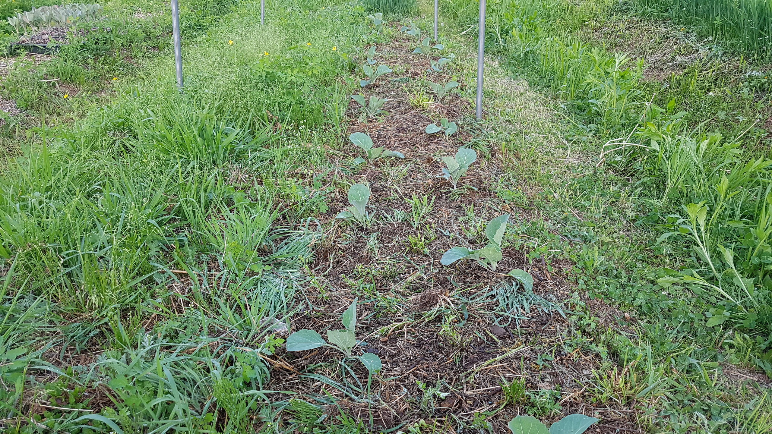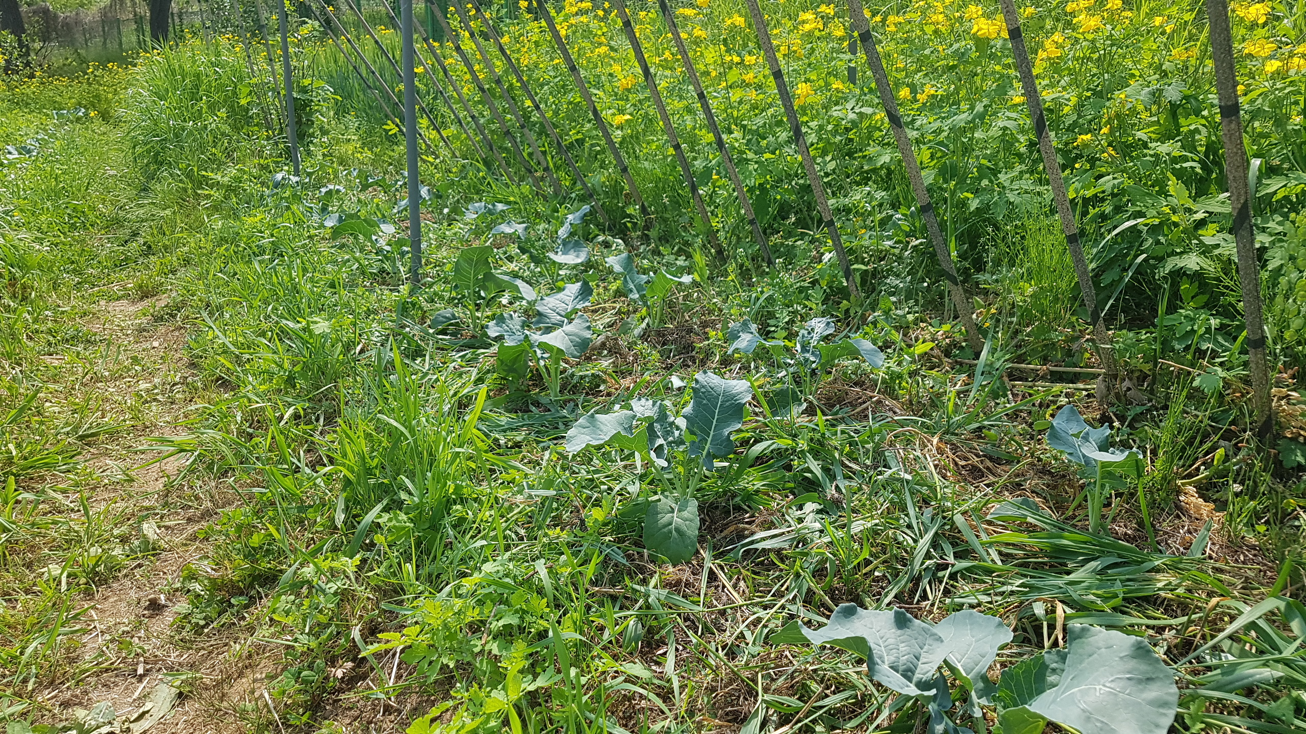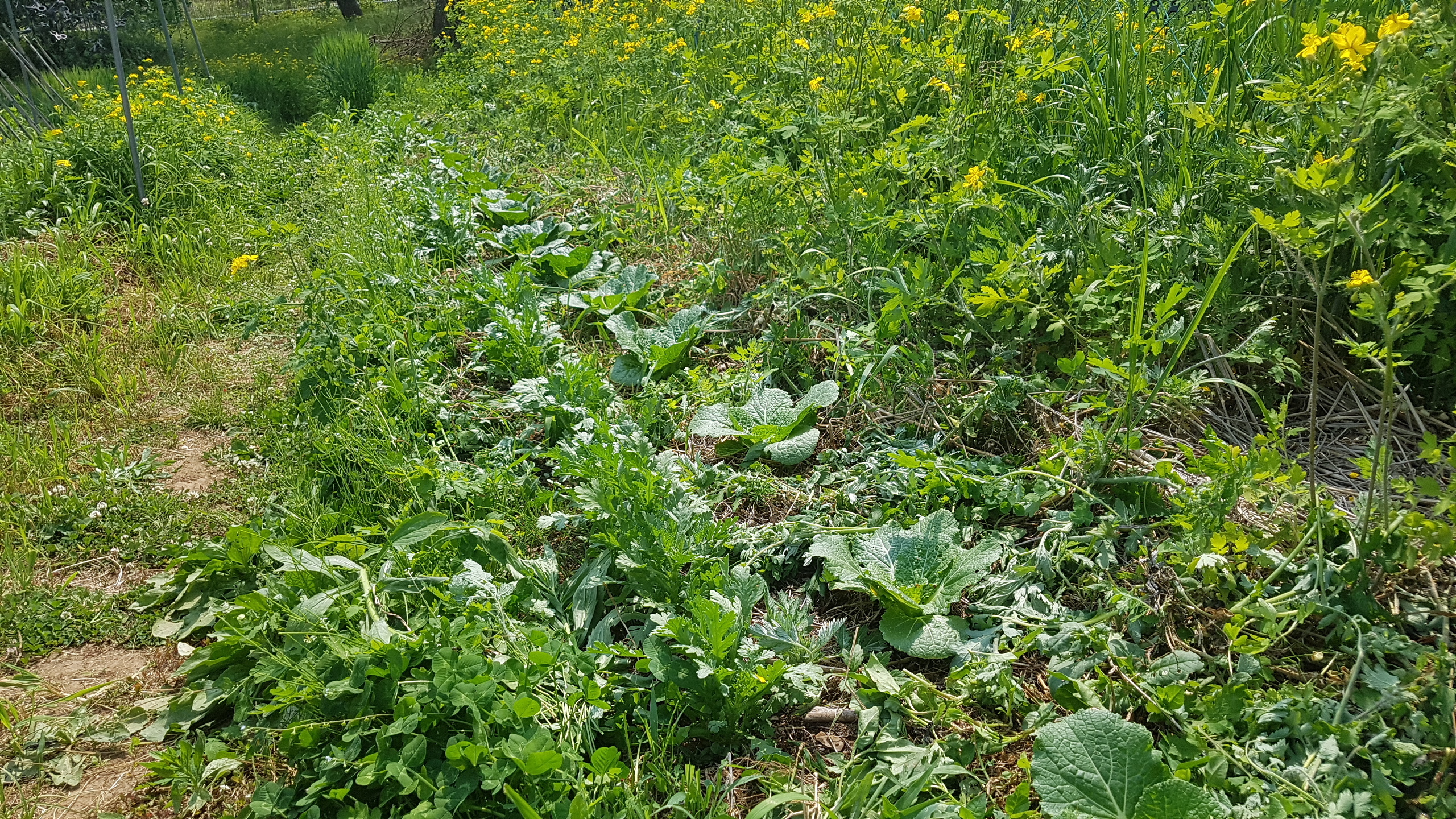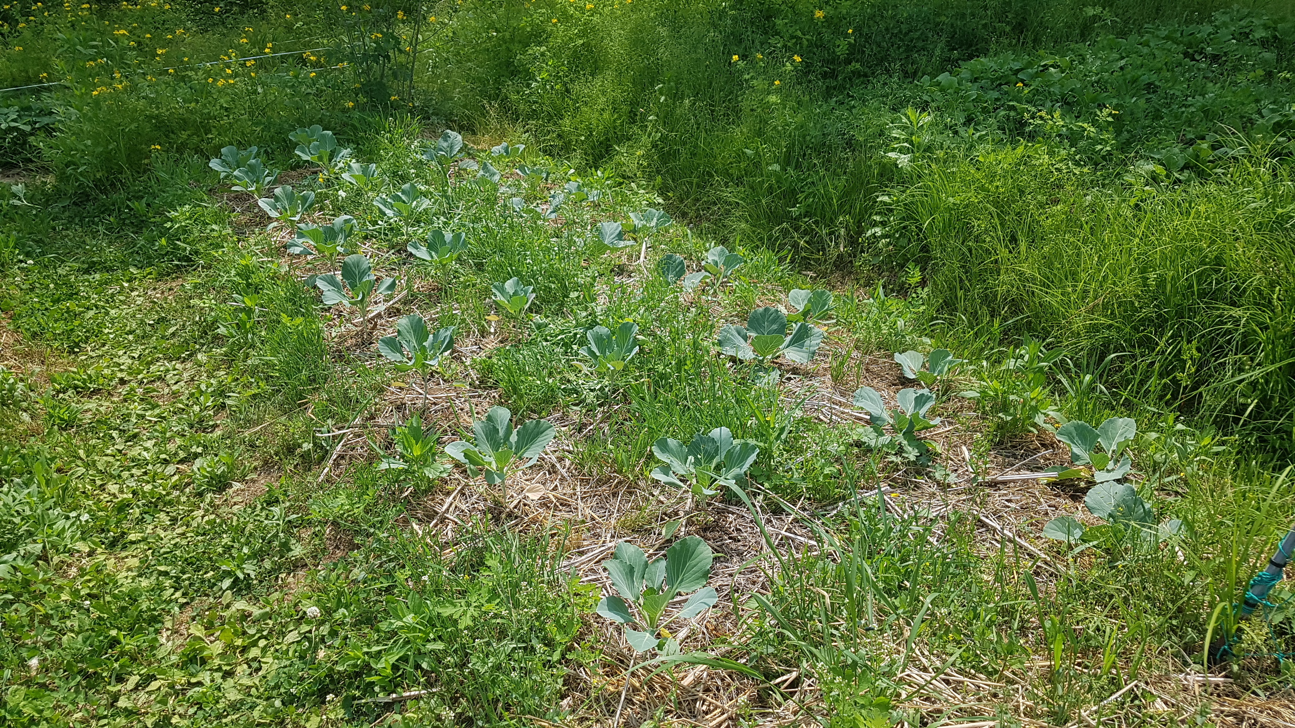 4. 오늘 논죽 모내기에 앞서 쌈배추, 양배추, 브로콜리의 포기정리를 했다. 다년생 풀들이 많이 자라는 곳에 심은 양배추는 흙이 모종을 자꾸 밀어내어 말라죽은 포기가 몇 개 된다. 1:1:1 오뜨물을 주고 포기를 눌러 앉힌 후 주변 풀을 잘라 주었다. 쌈채소는 이미 잘 자라고 있어 오뜨물을 주지 않았다. 늦게 자라 늦게 정식한 채소들이 어떻게 자랄지 궁금하다.