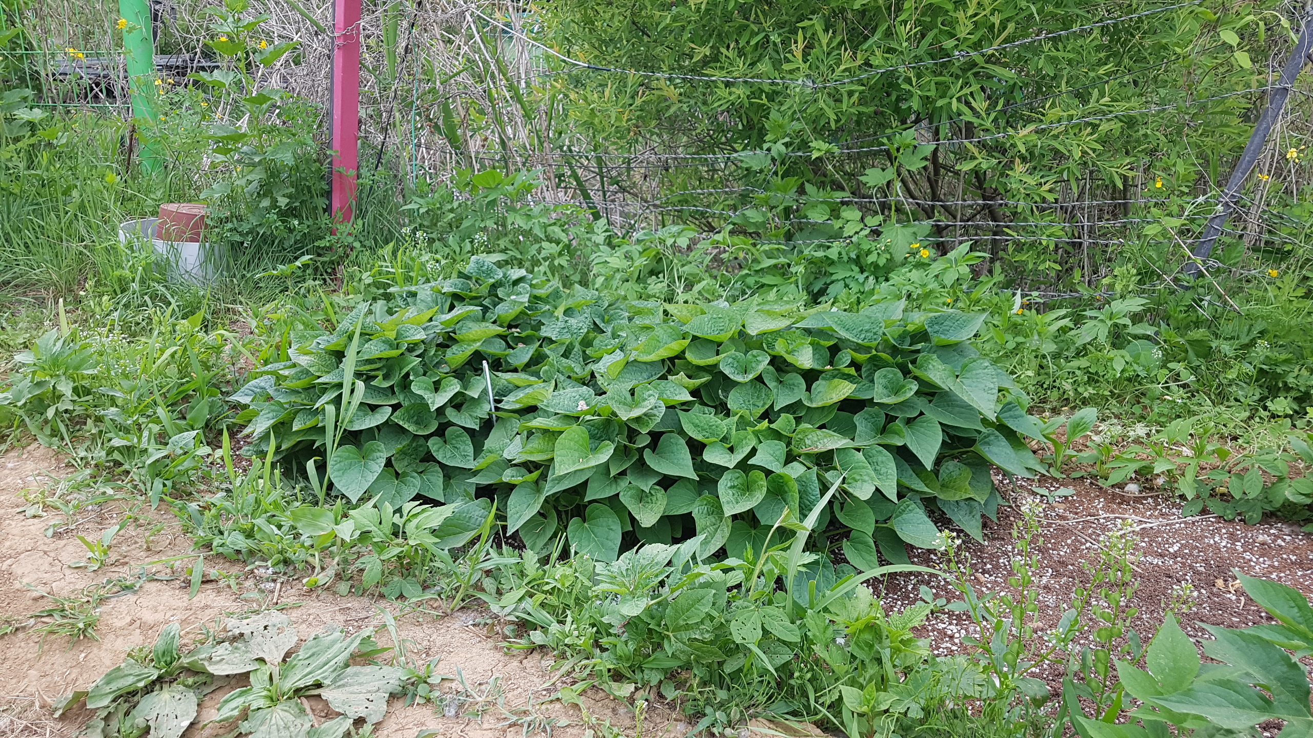 2. 야콘의 싹정리를 했다. 지난 4월 18일에 정식했다. 이미 싹이 나와 자라고 있는 것도 있으나 이제 싹이 나오기 시작한 것도, 아직도 싹이 나오지 않은 것들도 있다. 도로1번이랑에 싹이 나오지 않은 것이 많았다. 가장 건조한가 보다. 대략 5월초면 싹이 나오는데 낮은 밤기온과 메마름이 싹을 늦추었나보다. 보관 중에 대부분 싹이 나와 있었는데 너무 가물어 말라죽은 것은 아닐지 걱정했다. 그동안 물도 두 번이나 주었다. 깍둑베기로 풀을 벤 후 포기주변의 풀을 뽑아내고 베어낸 풀을 두둑 위에 덮었다. 고구마와 달리 두둑 위에 10~15cm 길이로 남은 풀은 그냥 두었다. 1주일 정도 후에 모든 싹이 나오면 1:1:1 오뜨물을 주기로 한다.
