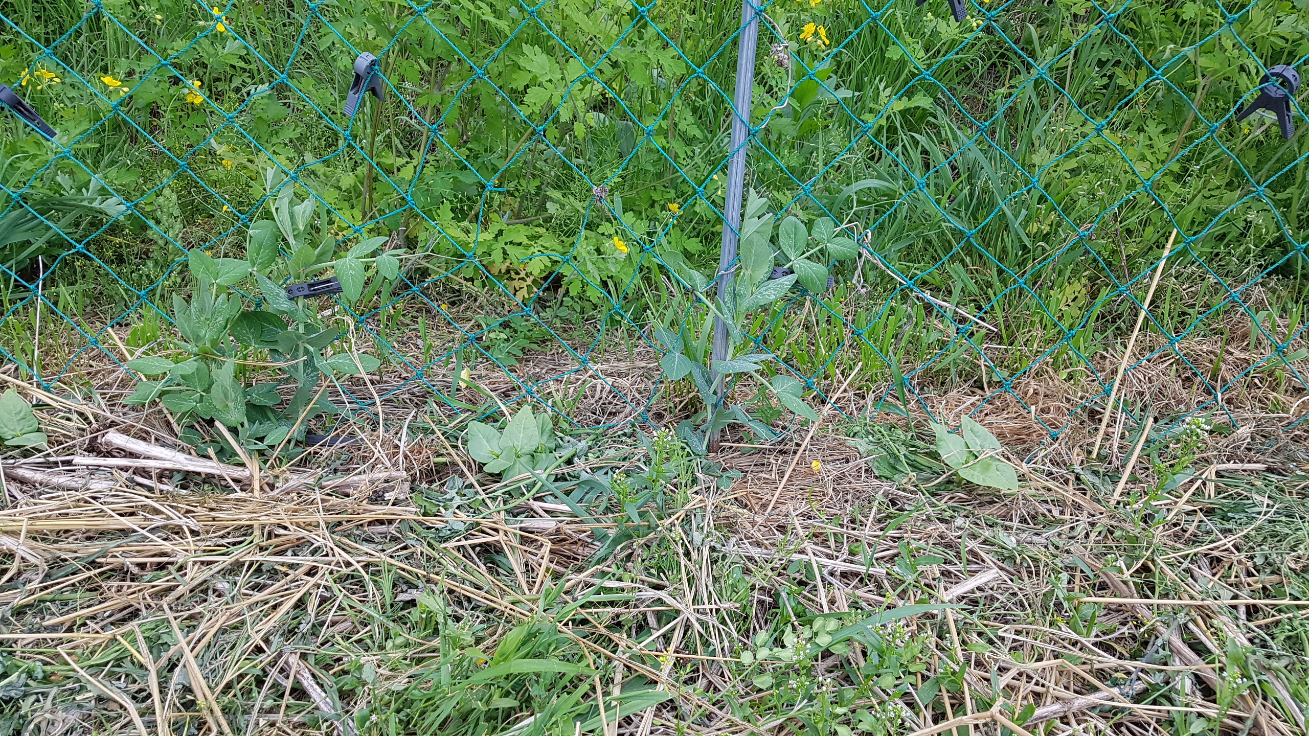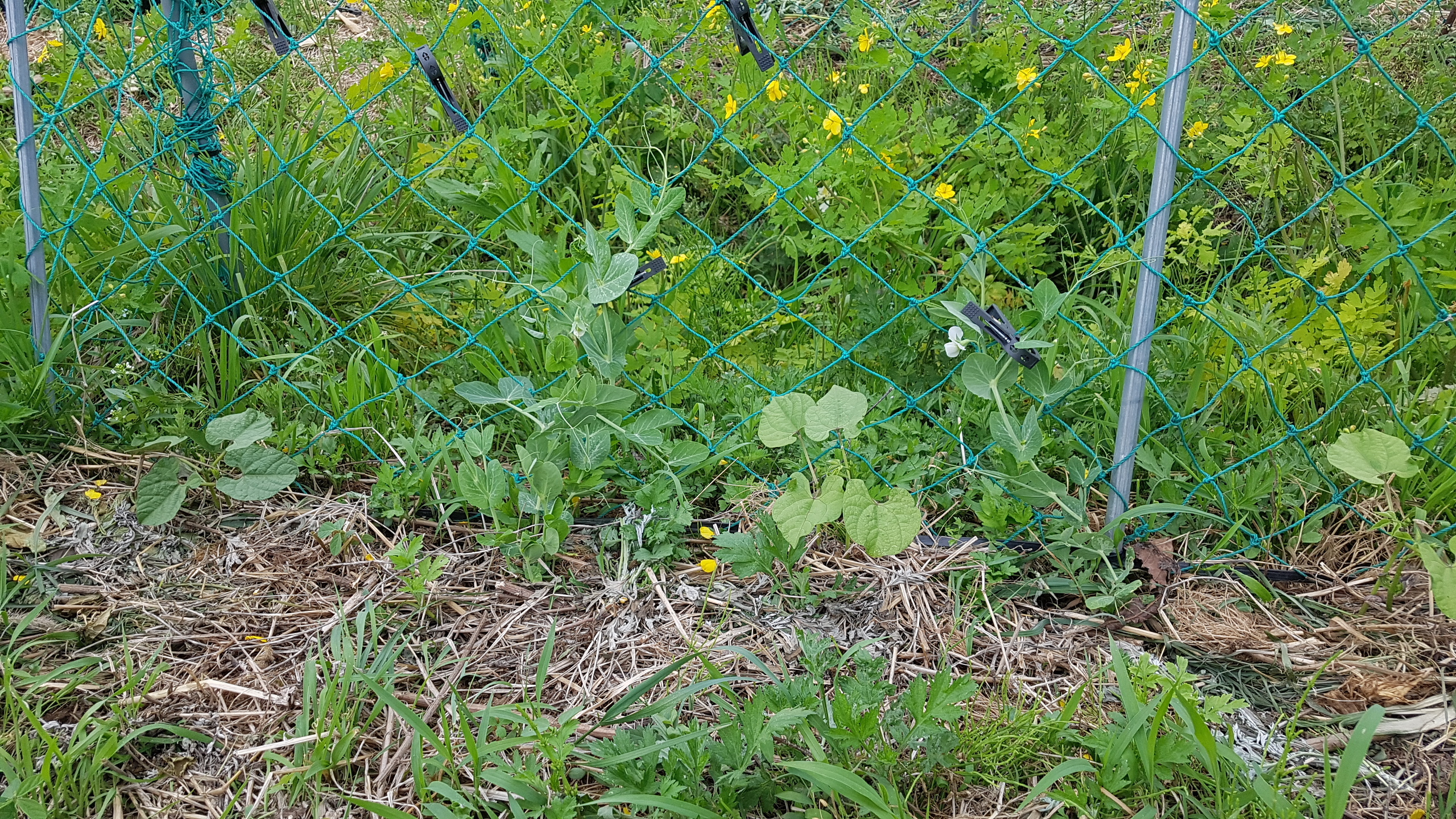 3. 추가 파종하여 보식한 논란 완두콩의 포기정리를 했다. 먼저 정식한 포기는 제법 키가 크다. 이번에는 잘되길 기대한다. 벌써 꽃이 핀 포기도 있다.