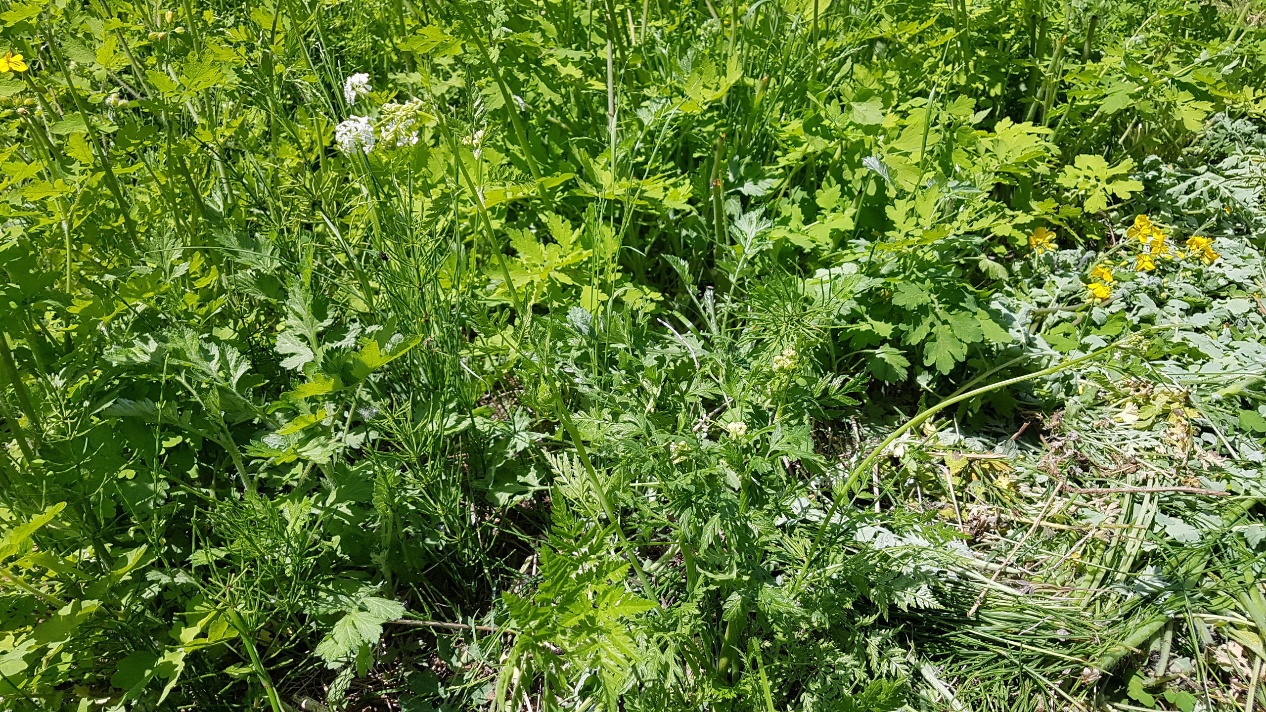 4. 풀에 덮인 산마늘과 전호나물도 정리했다. 산마늘은 포기가 많이 커지고 분구도 진행되는 것 같다. 전호나물은 꽃이 피었다.