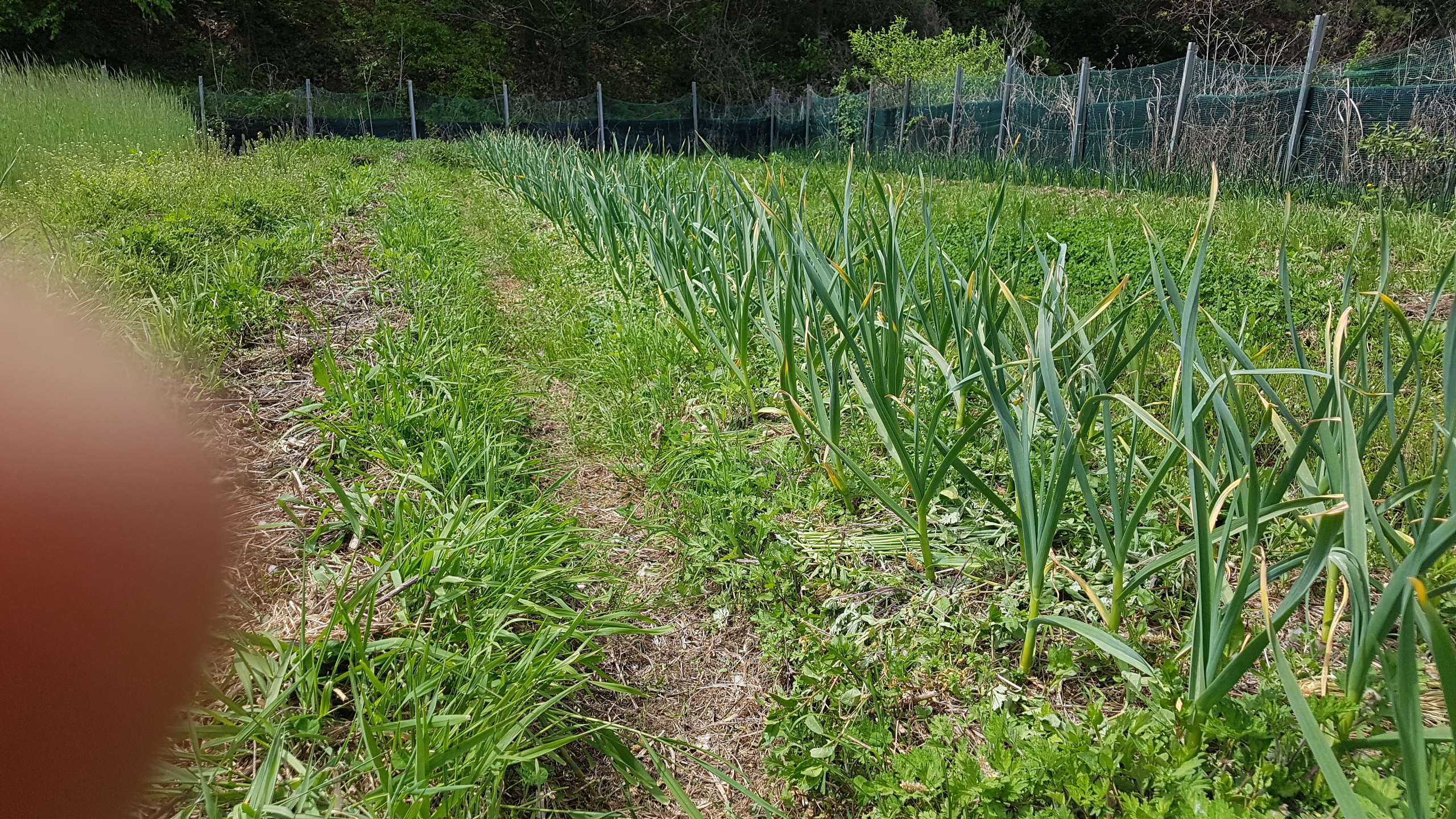 2. 마늘과 양파는 순조롭게 자라고 있다. 풀정리가 필요하다.