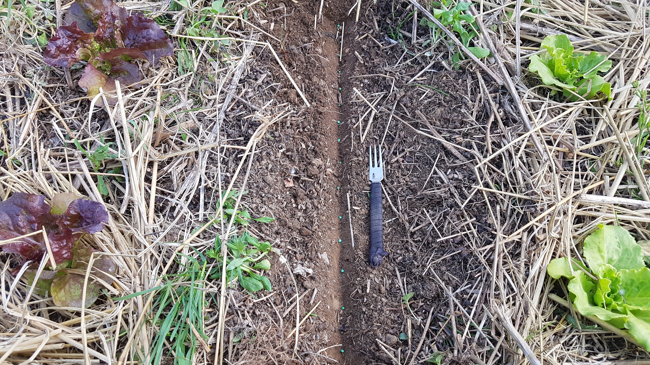 4. 열무를 직파했다. 어제 싹정리를 한 쌈채소 중 싹이 나오지 않은 적오크린 파종구와 그제 쌈채소를 정식하고 남은 자리와 쌈채소 줄사이에 열무를 2~3cm간격으로 파종한다.