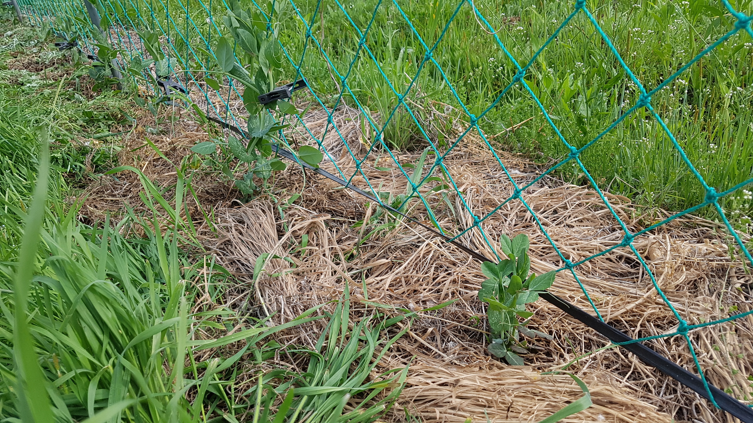 4. 어제 완두콩을 유인망에 고정했다. 포기에서 유인손이 나와 여기저기를 붙잡는다. 포기가 이리저리 휜다. 모내기 시작 전에 동부와 강낭콩을 정식해야 하는데 일정이 어찌될까.