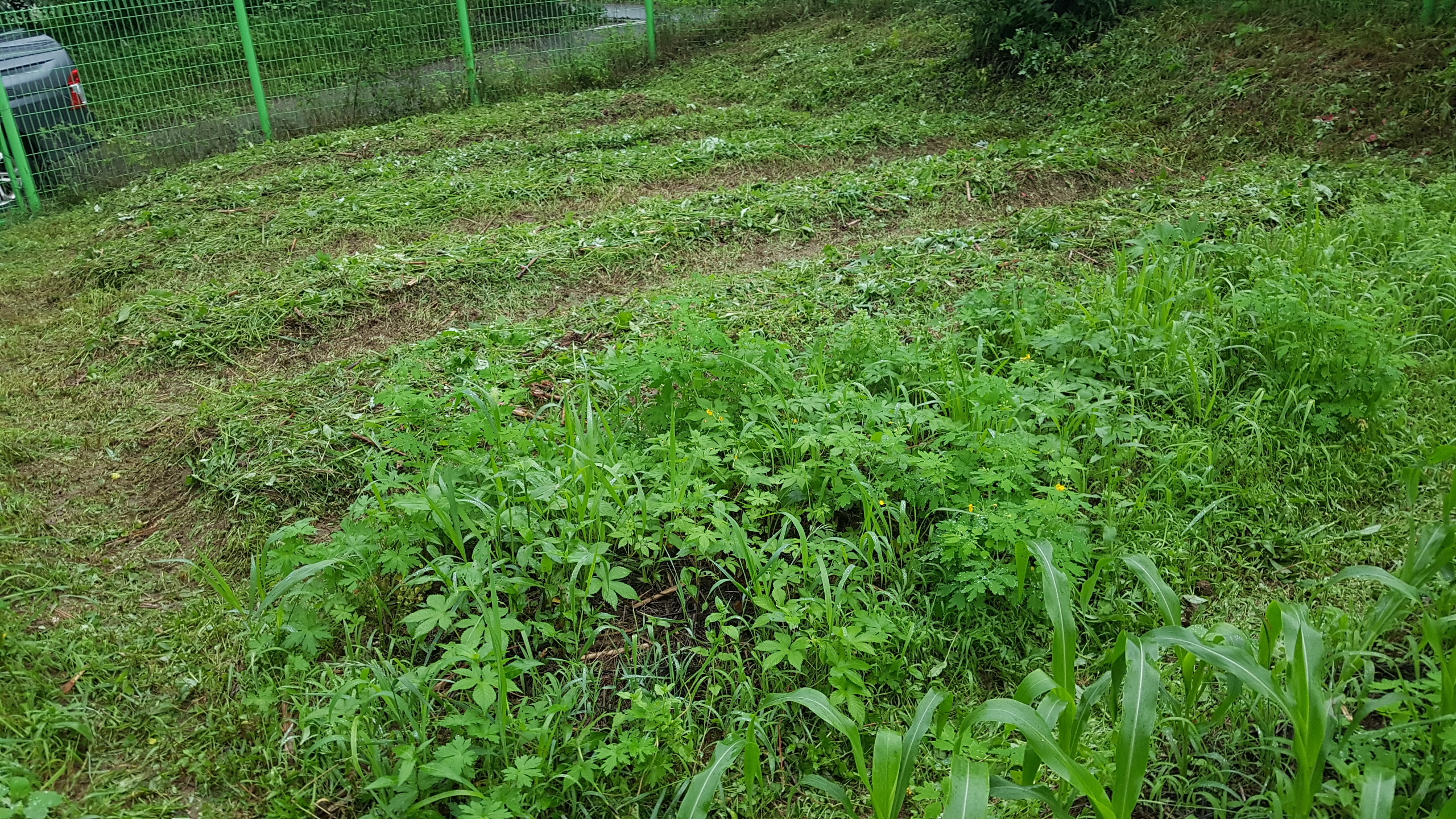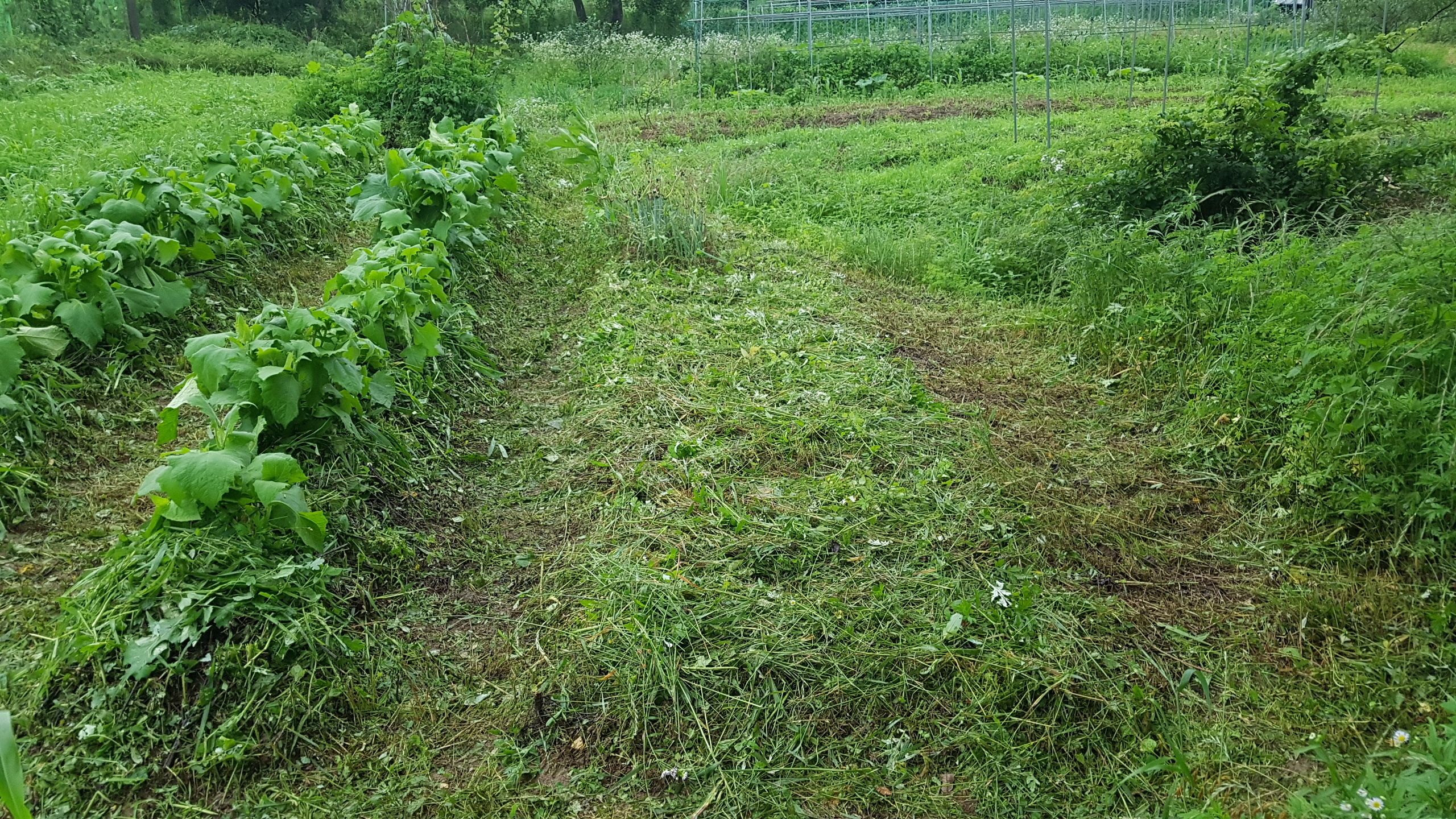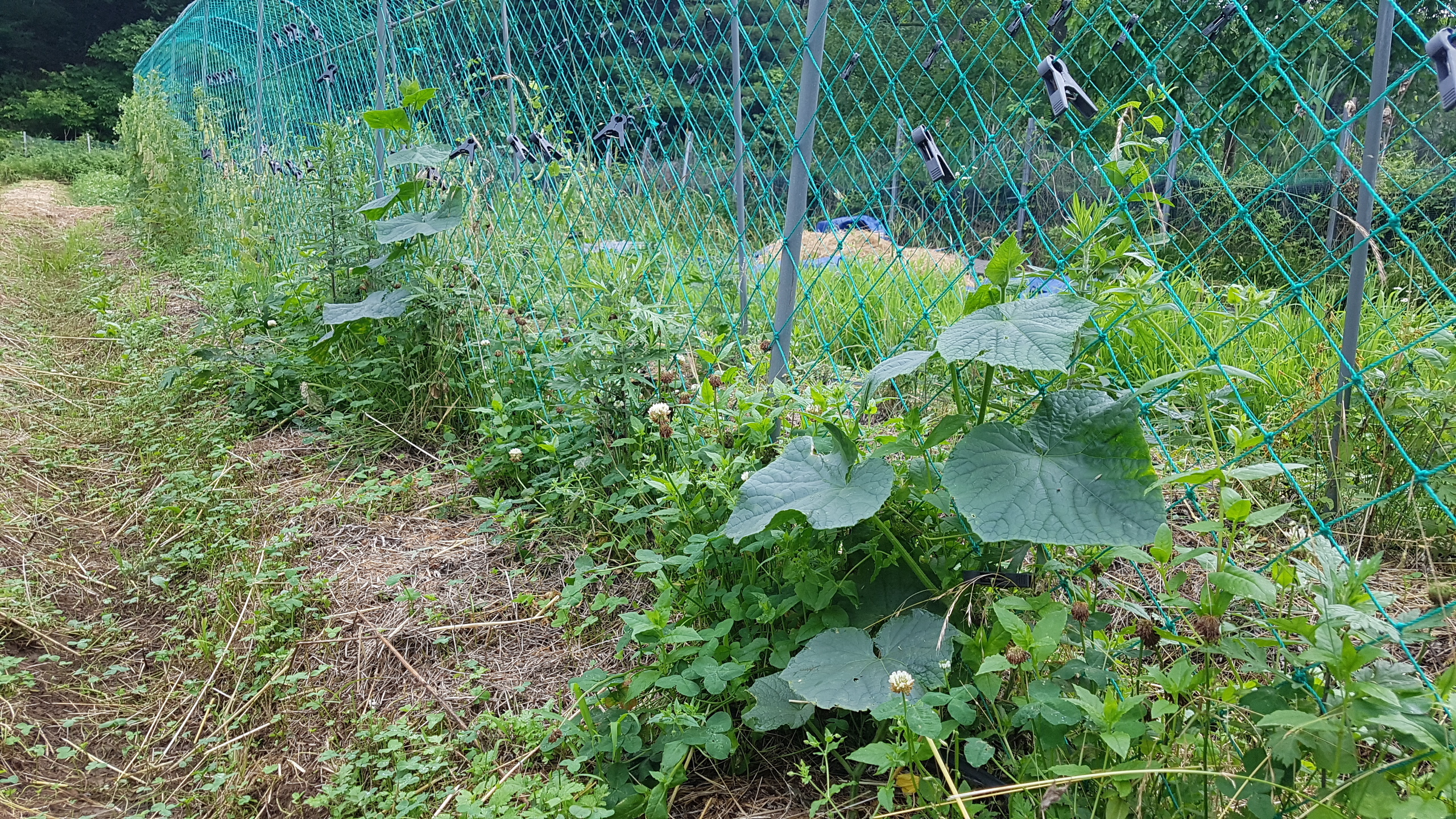 6. 내일부터 선비콩 정식을 위해 길밭입구이랑의 풀을 베었다. 선비콩은 길밭 계곡이랑 늦깨 서쪽과 입구이랑에 먼저 정식하기로 한다.