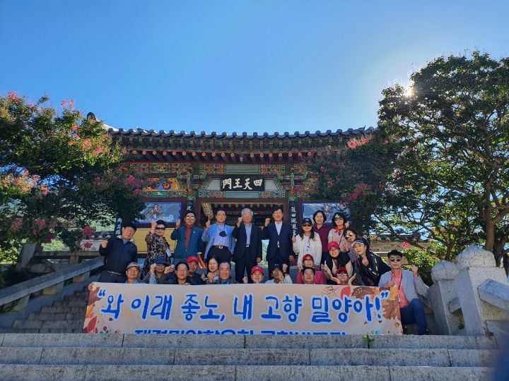 | ◆3년만에 개최된 제64회 밀양아리랑대축제의 <출향인 고향의 밤> 행사에 참석하기 위해 재경밀양향우회의 전세 버스를 타고 밀양을 다녀 온 것은 지난 9월 23일이었다. 전세버스는 28인승으로서 당일 코스 1대와 1박 2일 코스 1대 등 2대로 편성되어 있었지만, 애통하게도 당일 코스에 편성된 나는 <출향인 고향의 밤> 행사를 끝으로 서둘러 귀경 전세버스에 승차하지 않으면 안 되었다. 그런데 며칠 후, 재경밀양향우회의 카톡방에 올린 총무의 표충사 방문 사진들을 보고 나는 가슴을 치면서 탄식하지 않을 수 없었다. 왜냐하면 수백 장이나 되는 행사 사진 중에서 내가 포함된 당일 코스 방문단의 사진은 얼마 되지 않았고, 거의 대부분이 1박 2일 코스 고향 방문단의 사진으로 온통 도배가 되어 있었기 때문이었다. 그 바람에 카톡방에서도 크게 논란이 되었지만, 꿈에도 그립던 밀양까지 갔다가 표충사 인근의 내 고향 마을에 가 보지 못한 나는 다른 향우들처럼 내년을 기약하며 그대로 순순히 물러나고 싶은 마음이 결코 아니었다. 총무가 카톡방에 올려놓은 호국성지 표충사를 찾은 향우인들의 온갖 사진들을 보면서 내 유년 시절의 아련한 추억들을 반추해 보면서 남의 사진들을 통해서나마 길고도 깊은 시름을 애써 달래야 했기 때문이었다. ◆아, 재악산 표충사(載岳山 表忠寺)! ◆예전에는 이 삼청석탑은 만일루 앞의 고색창연한 연못 가에게 서 있었지요. 그런데 그 일본식 연못은 일제잔재 청산운동 때 없어지고 말았는데. 표충사를 품어안은 배산인 재악산(載岳山)의 이름은 일제가 조작한 천황산(天皇山)이 그대로 공식적인 명칭의 지위를 누리며 버젓이 사용되고 있는 현실이 그저 안타깝기만 합니다. 하기야 재약산(載岳山)의 제2봉에다 갖다붙인 재약산(載藥山)이란 이름도 원래대로 재악산(載岳山)의 제2봉인 수미봉(須彌峰)으로 바꾸어야 할 것입니다. ◆바른편 능선 너머에 있는 내원임을 끼고 금강폭포 앞의 한계암과 일직손씨들의 성지라 할 수 있는 서상암을 거쳐서 재악산(載嶽山)의 최고봉인 사자봉으로 가는 길! ◆어린 시절, 소를 먹이러 다니던 우리들의 놀이터가 되어 주곤 했던 '벼락나무 돌껄'의 '북암' 바위- 효봉 대선사의 사리탑이 세워지기 전까지 이 바위 앞에는 어른의 몇 아름이나 되는, 그러나 벼락을 맞은 느티나무와 팽나무가 이 바위 앞의 상석 자리에 부부처럼 나란히 서 있었지요. ◆두드리면 과연 목탁소리가 나는지 확인 중입니다. ◆멀리 해발 1,189m의 재악산(載岳山)의 정상 사자봉(獅子峰)이 보입니다. ◆대나무숲 위료 소뿔처럼 솟아 있는 두 개의 산봉우리 중 왼쪽 것이 재악산의 제2봉인 수미봉입니다. 그런데 이것이 별도의 산인 양, 재약산(載藥山)으로 통용되고 있는 것이 문제인 것입니다. 그렇게 되면 표충사 배산의 이름은 본래의 재악산(載岳山)과 천황산(天皇山), 재약산(載藥山 등으로 세개나 되는 셈이니까 말입니다. ◆예전에는 사천왕문이 이 자리에 있지 않고, 가람 남쪽의 옥류동천을 내려다보며 서 있었지요. ◆멀리 바라다보이는 산봉우리가 붓끝 모양의 필봉(筆峰)입니다. ◆사진 전면에 임진왜란 때 나라를 구하는데 앞장을 섰던 사명대사와 서산대사, 기허대사 등 삼대 호국 의승장들의 위패를 모시고 해마다 유림과 불교계가 연합하여 춘추로 향사를 올리고 있는 사당인 표충사(表忠祠)가 보입니다. 다른 사찰 어디에서도 볼 수 없는 현상이지만, 호국충심에는 서로 배타적이던 불교계와 유림계가 따로 없었던 것입니다. 사찰의 이름이 신라왕자의 난치병을 고친 신령스러운 샘물이 있는 영정사(靈井寺)에서 애국충정의 재악산 표충사(載嶽山 表忠寺)로 바뀌게 된 것도 그 때문이지요! 그러니 이 재악산 표충사야말로 전국 유일의 호국성지(護國聖地)임이 더욱 분명해지는 것입니다. 사찰의 이름이 신라왕자의 난치병을 고친 신령스러운 샘물이 있는 영정사(靈井寺)에서 애국충정의 재악산 표충사(載嶽山 表忠寺)로 바뀌게 된 것도 그때문이지요! 그러니 이 재악산 표충사야말로 전국 유일의 호국성지(護國聖地)임이 더욱 분명해지는 것입니다. ◆사명대사의 금란가사를 비롯하여 선조 임금으로부터 하사 받은 지휘봉 등이 전시된 유물관 ◆다음에 소개한 여러 향우들의 글과 사진들은 위와 같은 사정으로 재경밀양향우외의 카톡방을 뜨겁게 달구었다가 또 하나의 추억으로 남을 흔적들이기에 그 내용들을 원문 그대로 소개해 보기로 합니다. *아이고. 1박2일의 여정이라 사진이 많습니다 *이 사진 안에 고향의 하늘도 보이고 나무도 보이고 숲도 보입니다 잘하면 맑은 공기도 마실 수 있을거에요. *어느 선배님이 그러셨어요 수옥아, 이제 다시 이런 여행을 할수 있을까?^^ 그 만큼 이번 여헁이 좋으셨다구~^^♧ 저희 1박팀은 손명석 특보님을 가이드로모시고 고향의 유명한 곳은 다 둘러본 거 같아요 손명석 특보님 너무너무 감사드립니다♧ *그러게요.. 이번 밀양아리랑축제는 당일 차량 한 대, 일박 차량 한대, 이렇게 갔었는데, 주로 일박하신 분들 위주의 행사가 된 것 같습니다. 당일 차량에 함께 탑승하신 분들 과도 좋은 추억 만들 수 있어서 감사합니다 ~^^ 