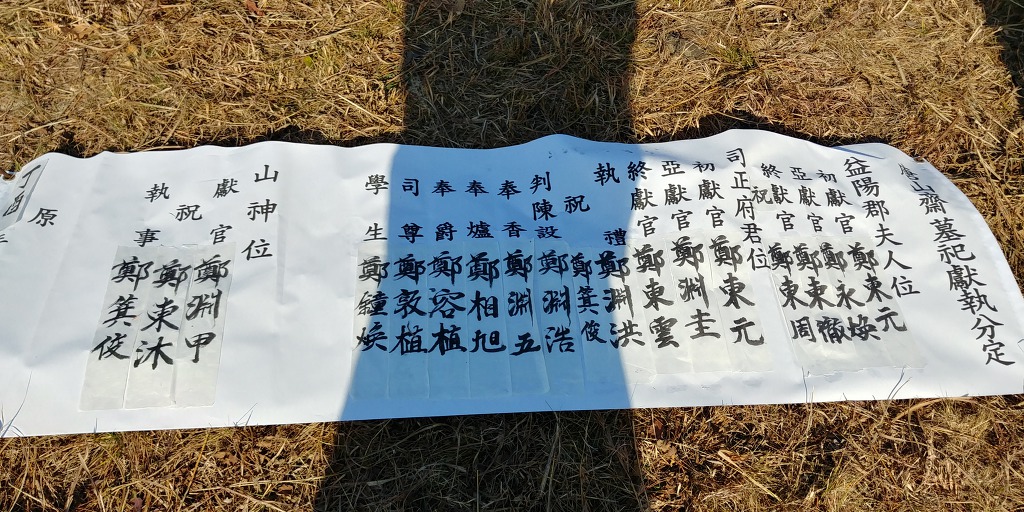 O 산신위 : O 헌관 : 정연갑, O 축 : 정동목, O 집사 : 정기준,
